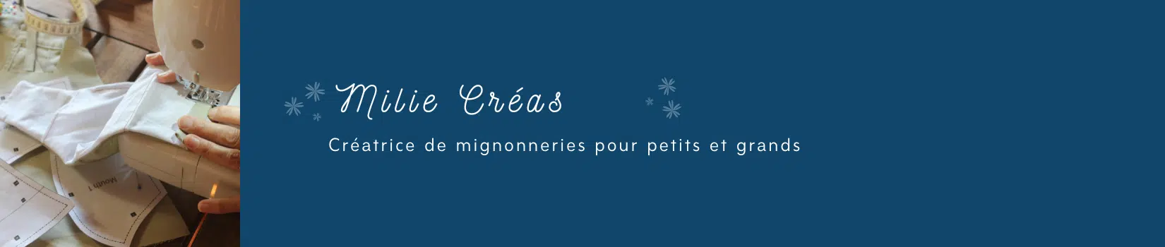 Passionnée depuis longtemps par les jolis motifs et le fait main, je me décide à me mettre derrière une machine à coudre il y a 3 ans maintenant. Depuis je ne la quitte plus et c'est ainsi que Milie Créas voit le jour.