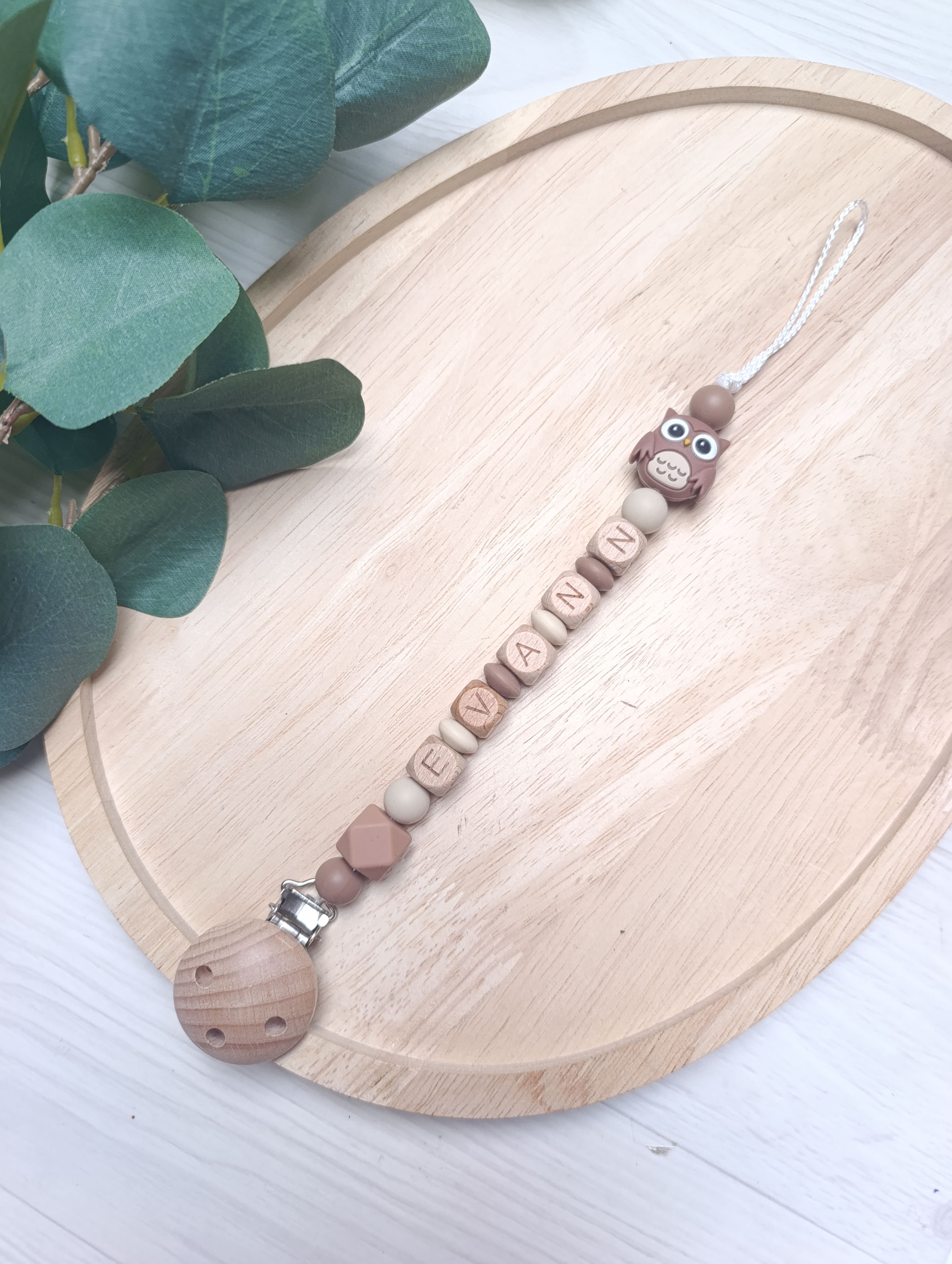- Attache tétine Bois naturel et Silicone alimentaire (Sans BpA, sans phtalates, etc…)