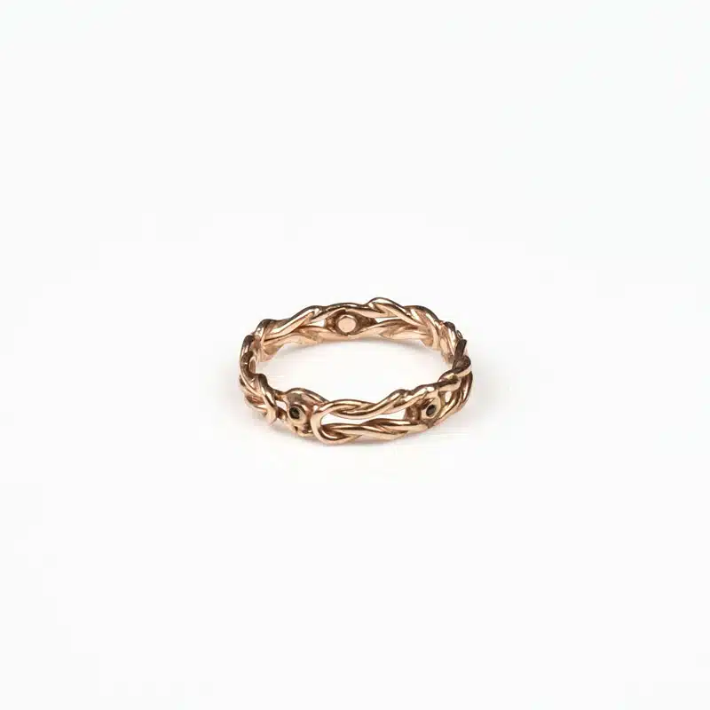 Bague Argent 925 Héraclès Plaqué Or Rose 18 Carats et ses 5 Spinelles Noir incrustés