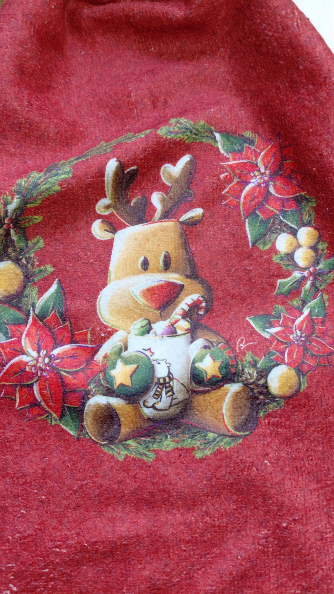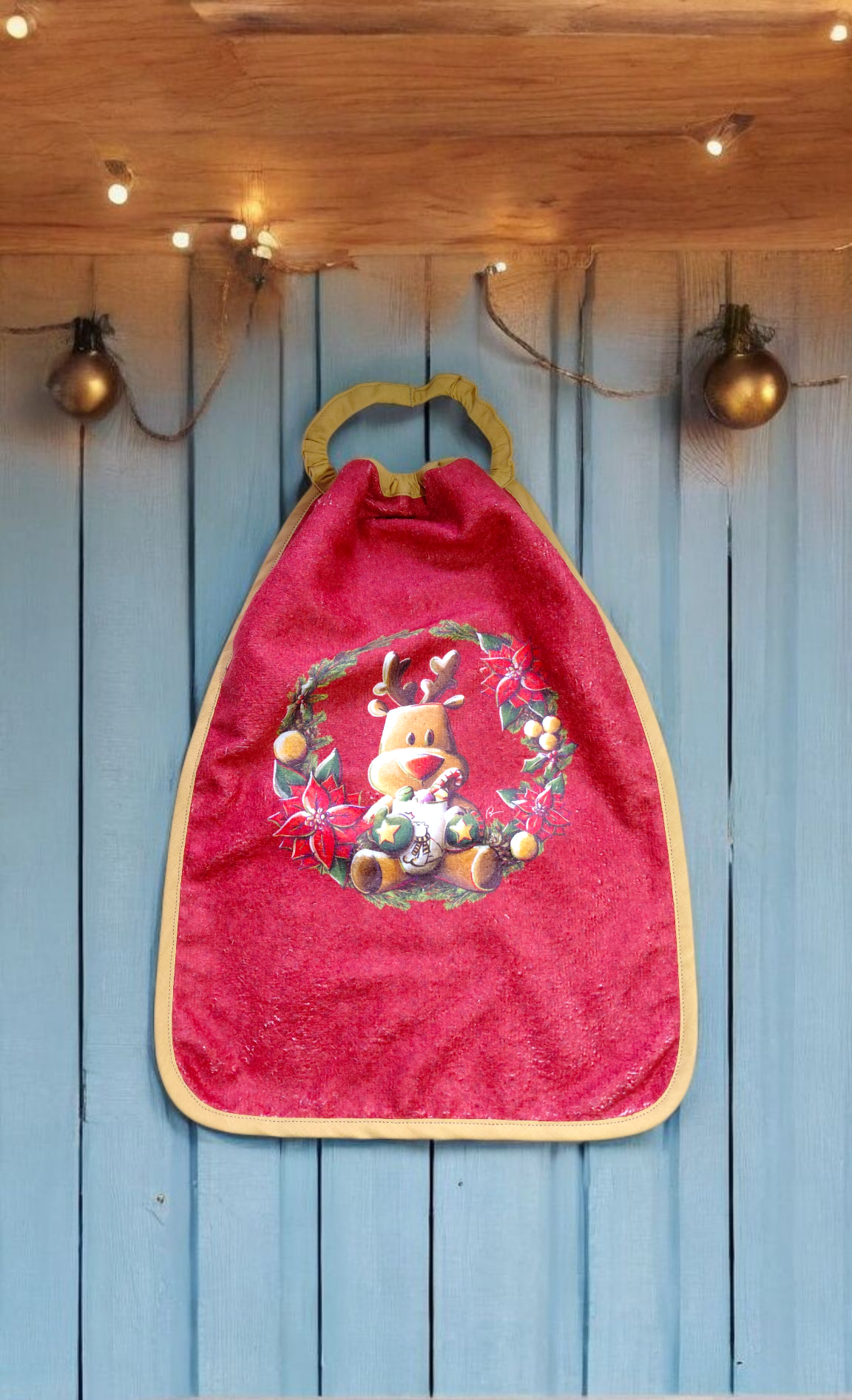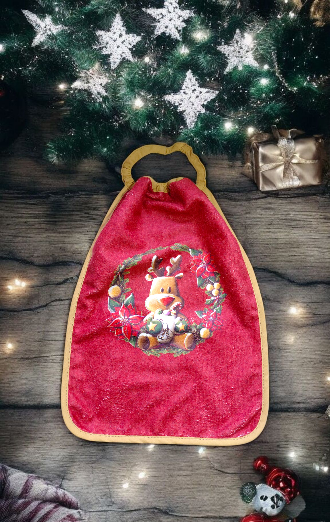Confectionné avec soin dans mon atelier, ce modèle présente un magnifique motif de Noël avec un petit renne trop mignon au centre d’une couronne festive.