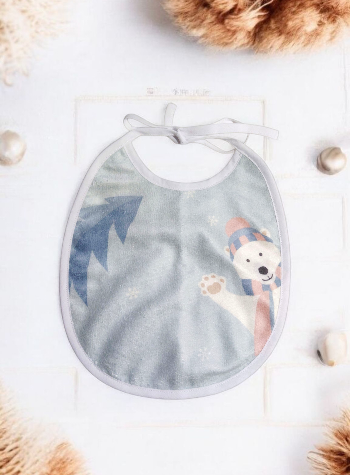 Son motif festif imprimé en France apporte une touche magique aux repas de fin d’année. Grâce à ses cordons d’attache, il s’ajuste facilement autour du cou de bébé et reste bien en place.