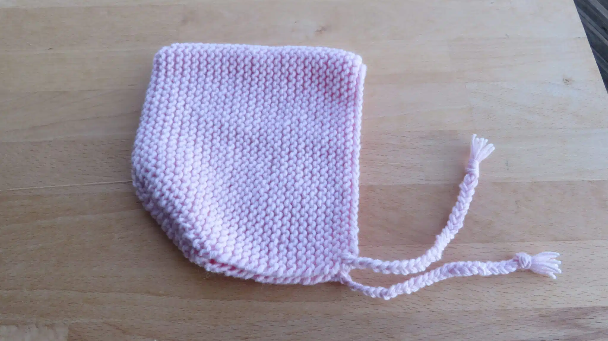 Béguin tricoté par moi même avec une laine mérinos, laine thermorégulatrice bien adaptée aux bébés et qui peut se porter en toute saison.