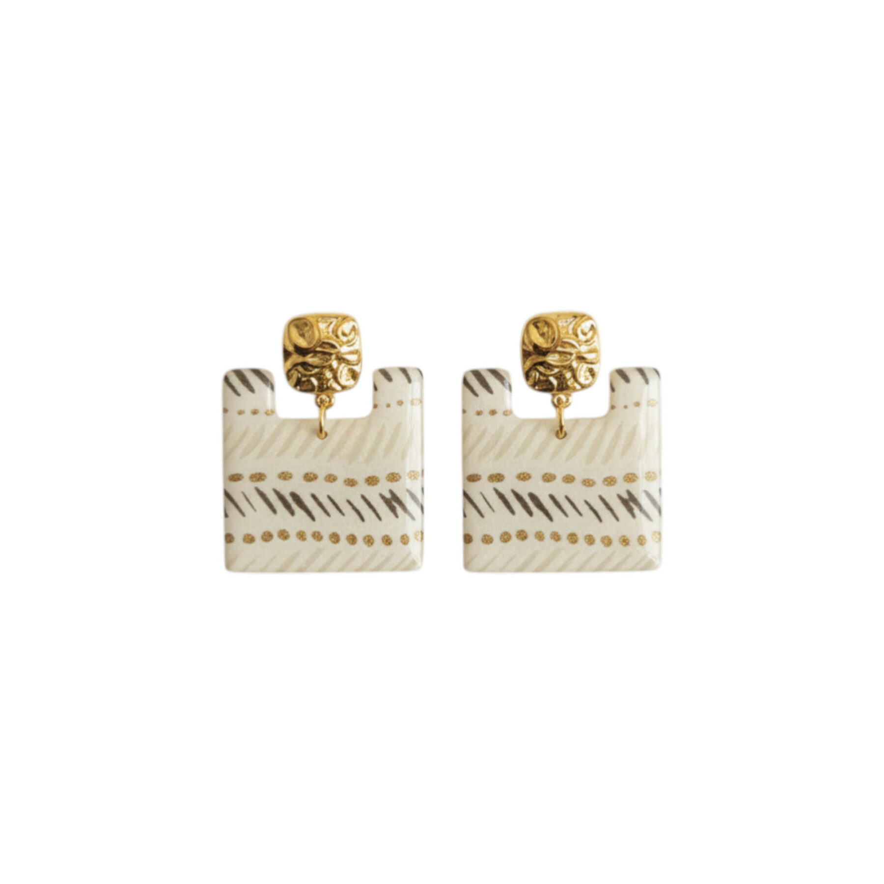 ✨ BOUCLES D’OREILLES Ṭā’ila — ÉCRU & OR