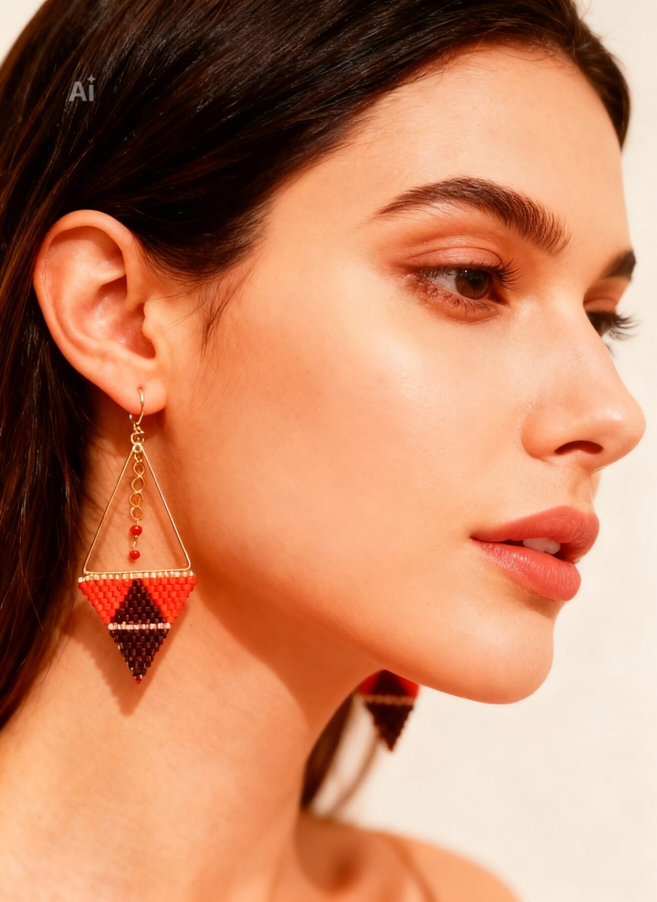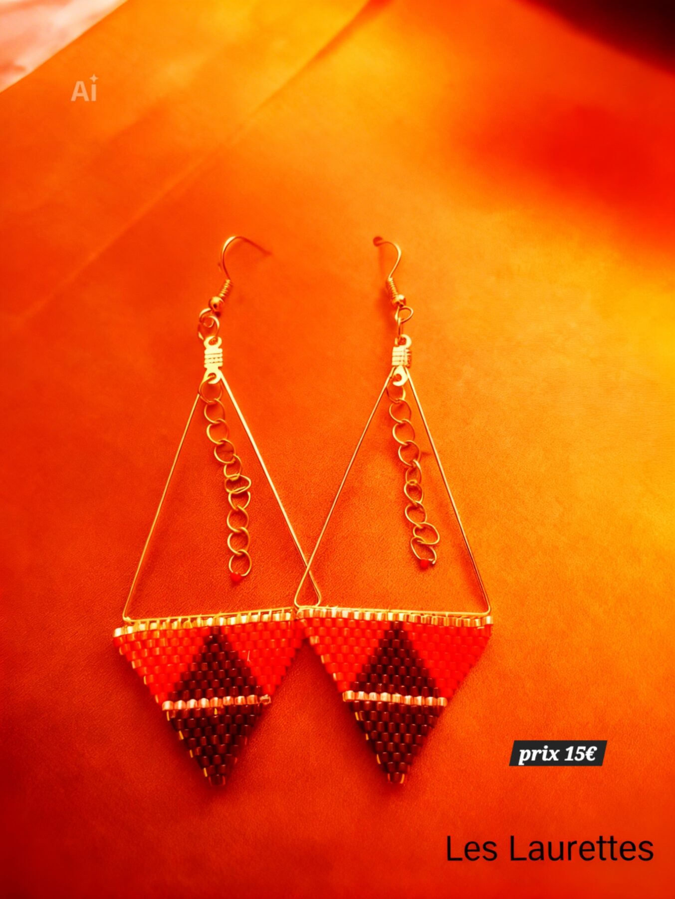 Boucles d’oreilles orange/noir or en acier inoxydable