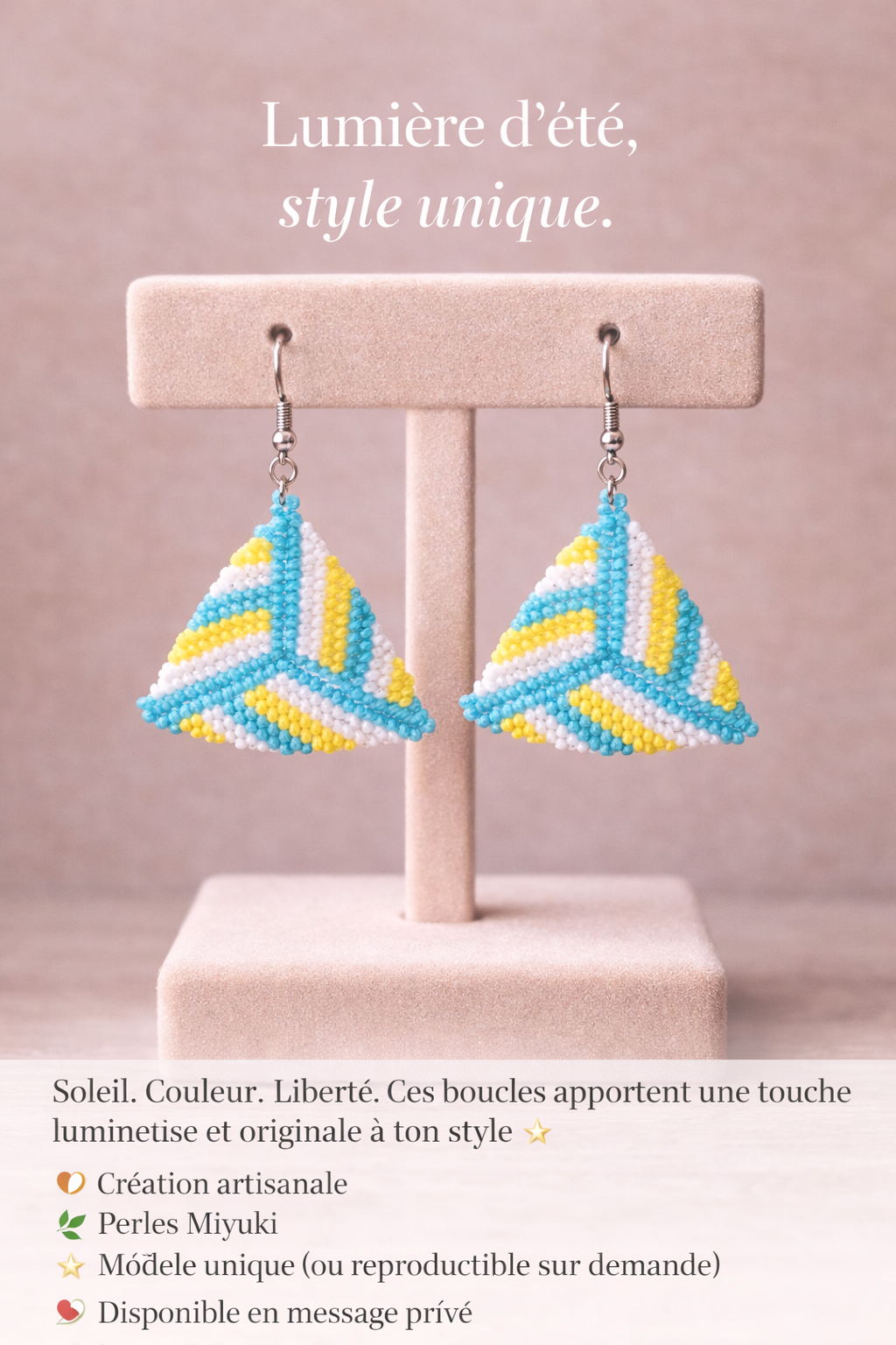 Boucles d’oreilles bleu/jaune/blanc acier inoxydable