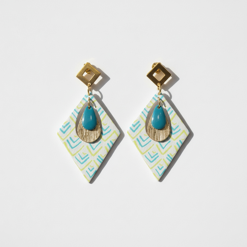 ✨ Boucles d’oreilles géométriques en papier indien – Création artisanale ✨