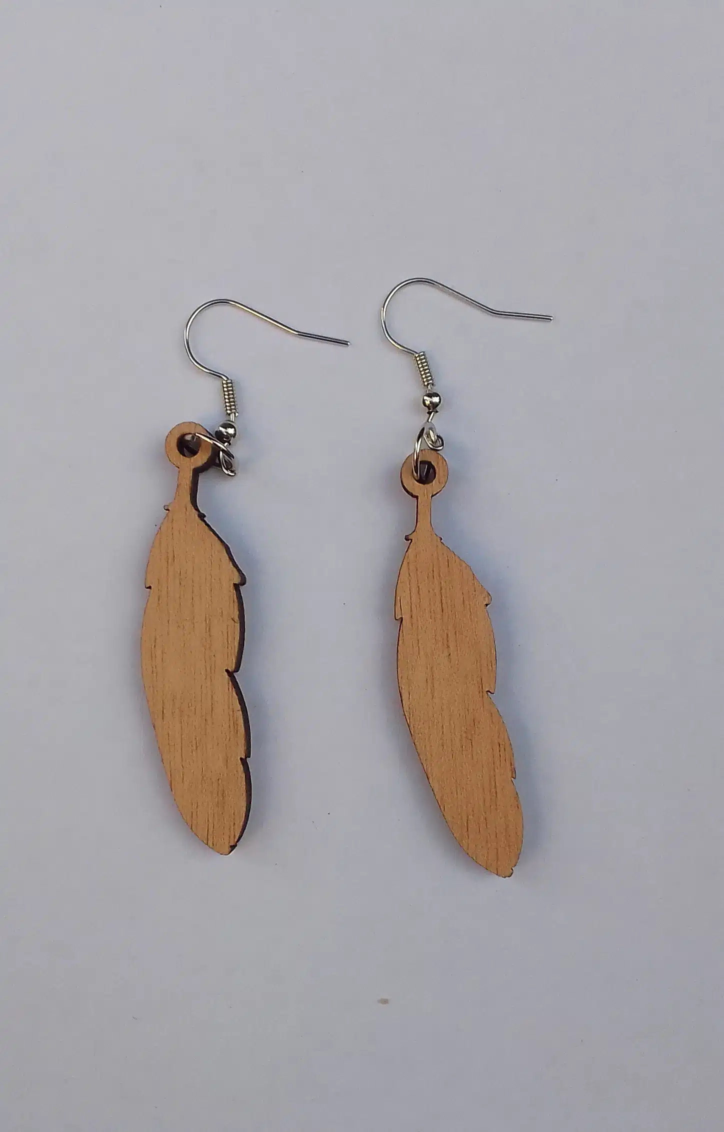 Boucles d’oreilles, acier inoxydable avec pendants en bois