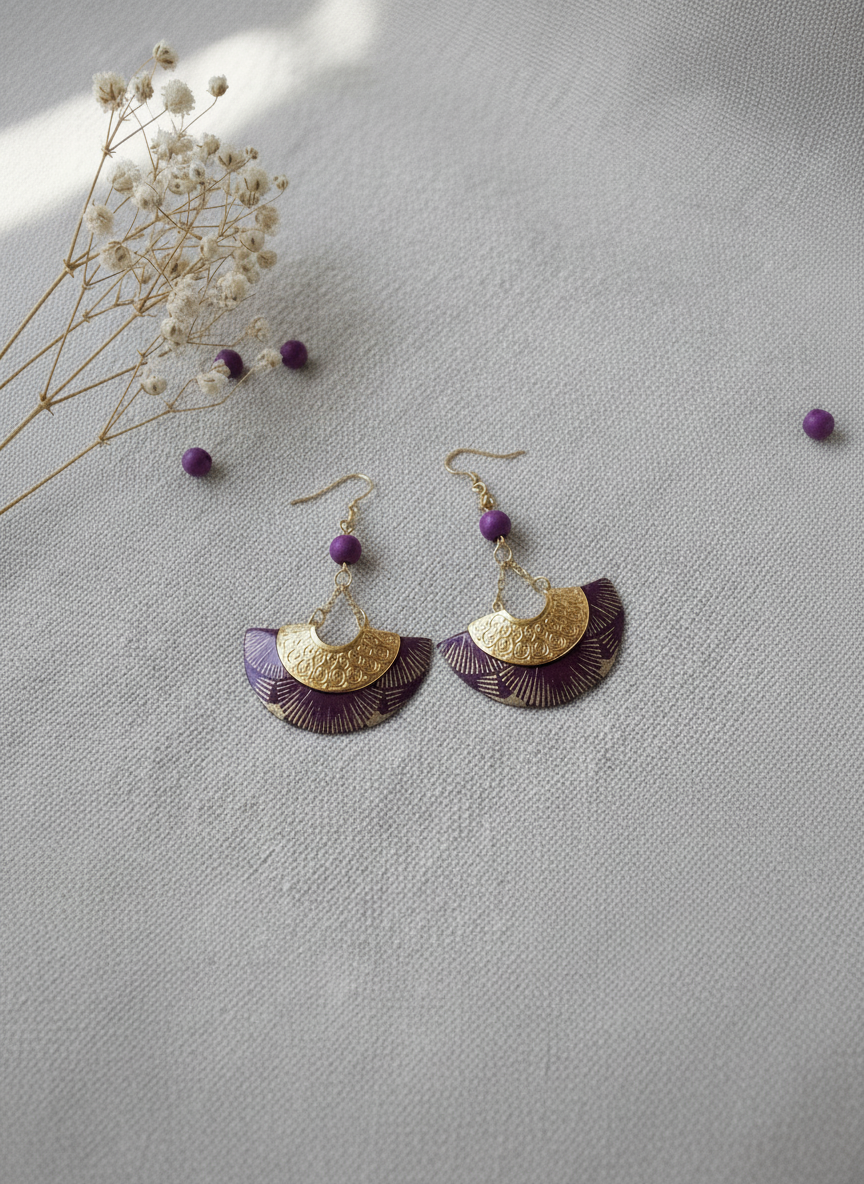 ✨ Boucles d’oreilles demi-rond ethniques en papier népalais et dorure 24k ✨