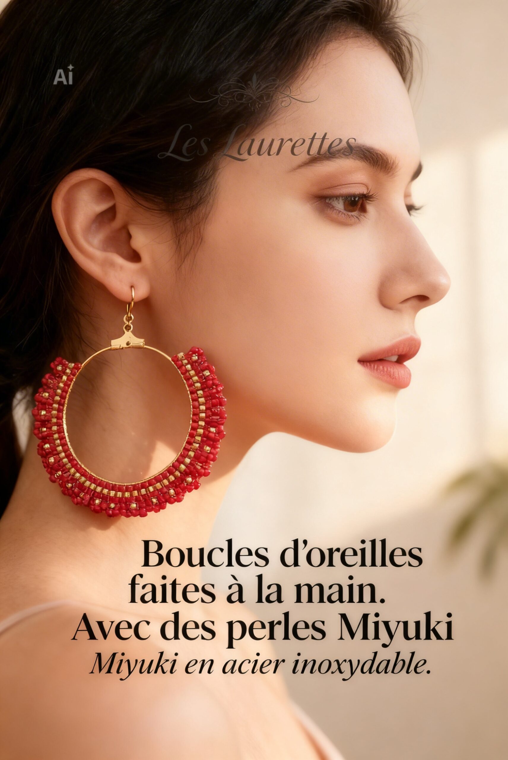 Boucles d’oreilles créoles en acier inoxydable rouge et or possibilité de commander dans différentes couleurs livraison quatre/cinq jours ouvrés