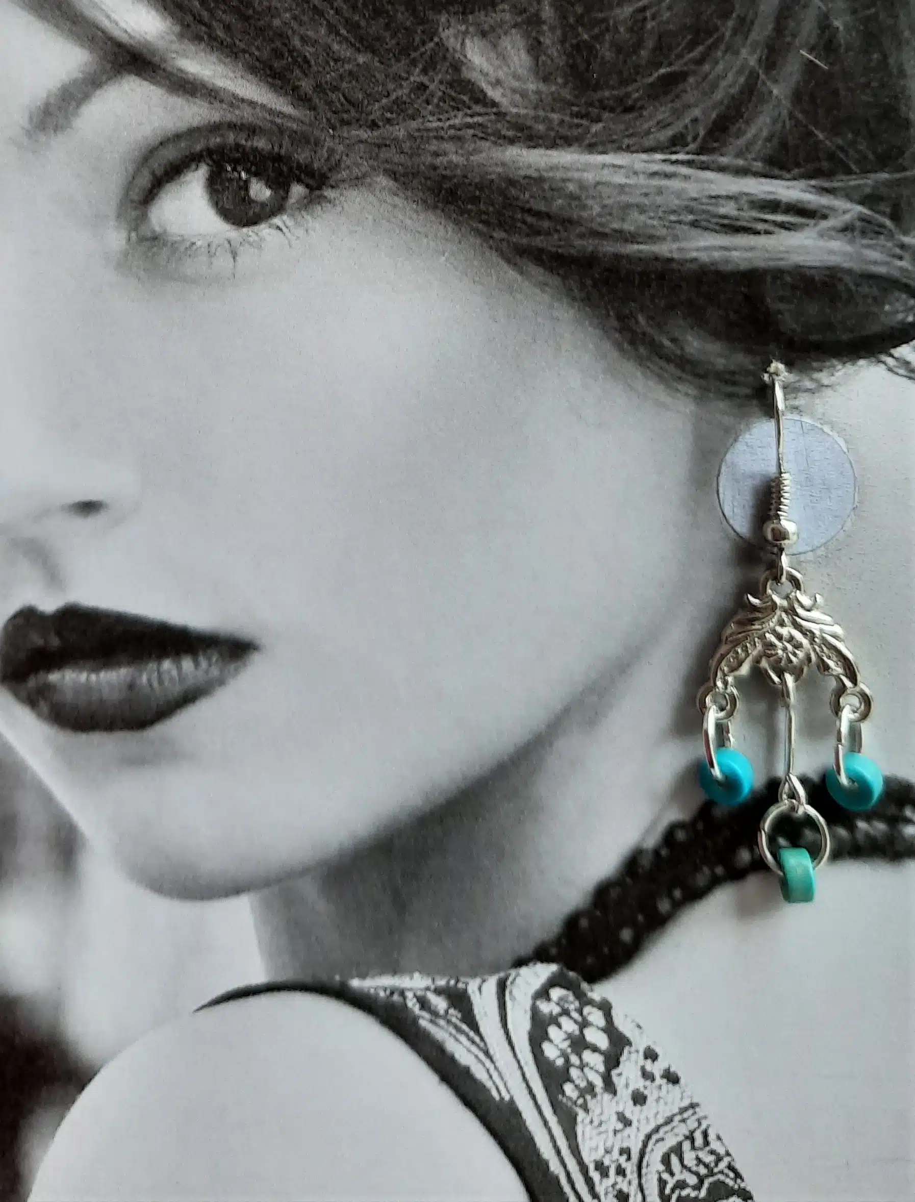 Mariage subtil d’une estampe et de perles rondelles en pierre turquoise.