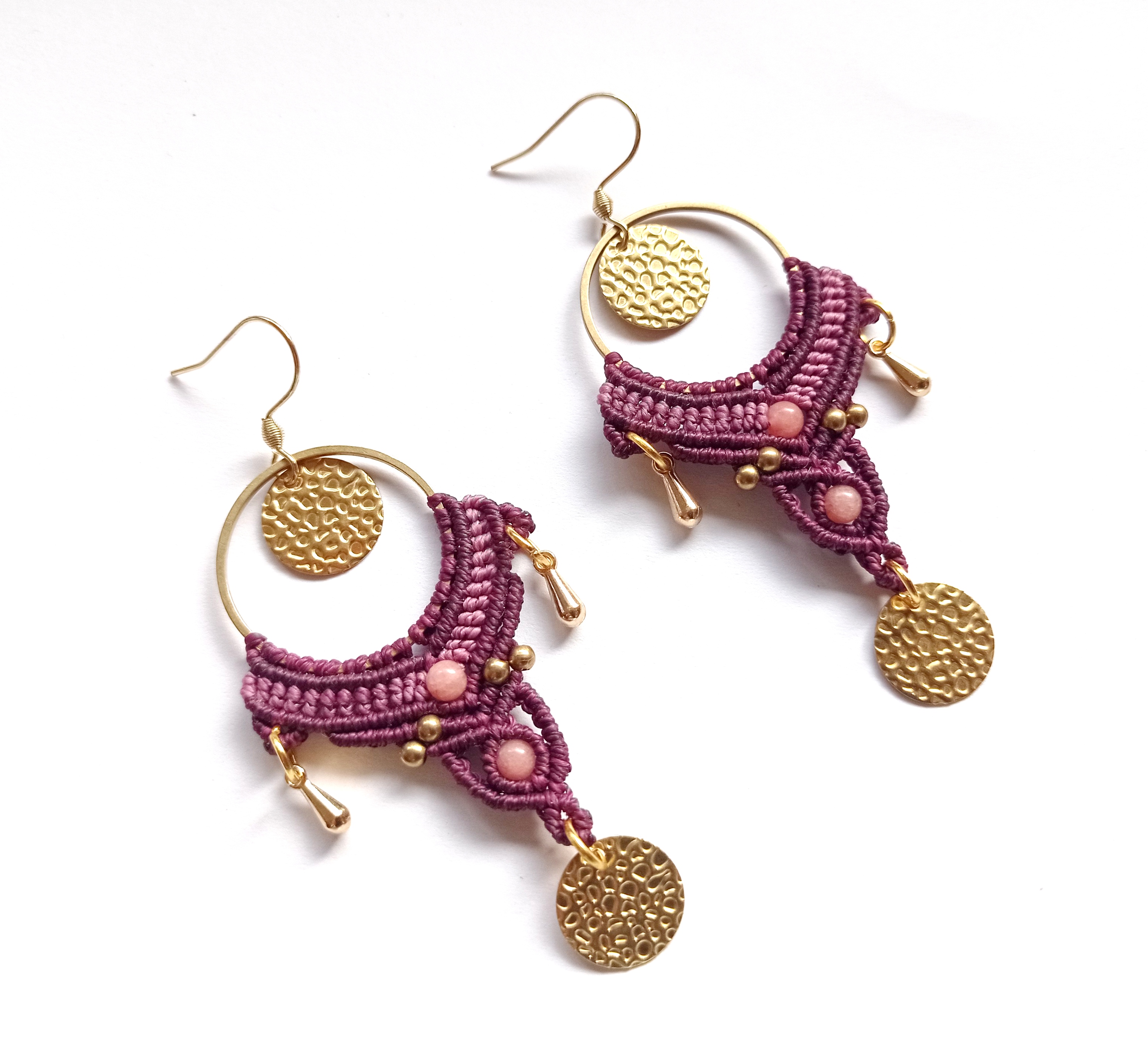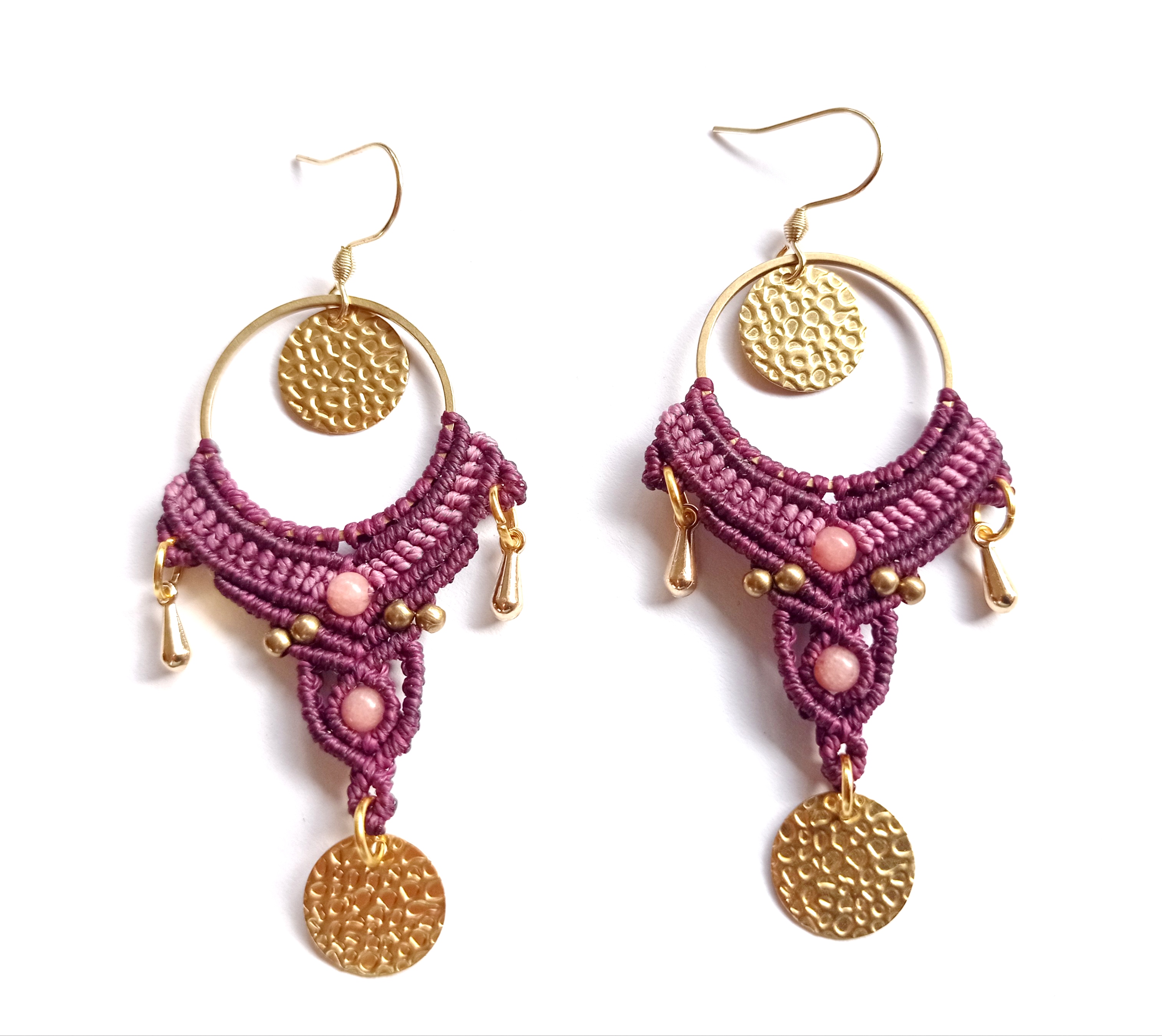Longues boucles d’oreilles pendantes réalisées en micro macramé.