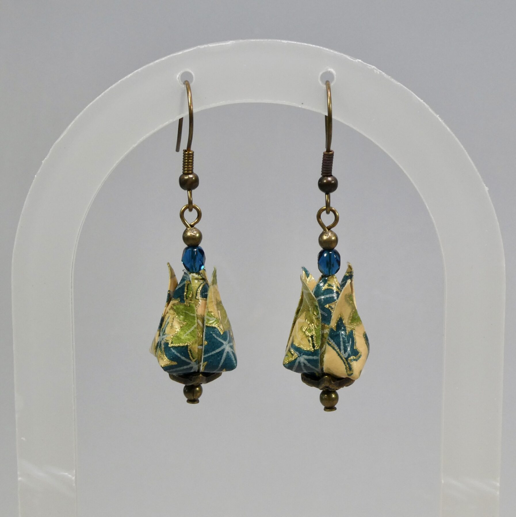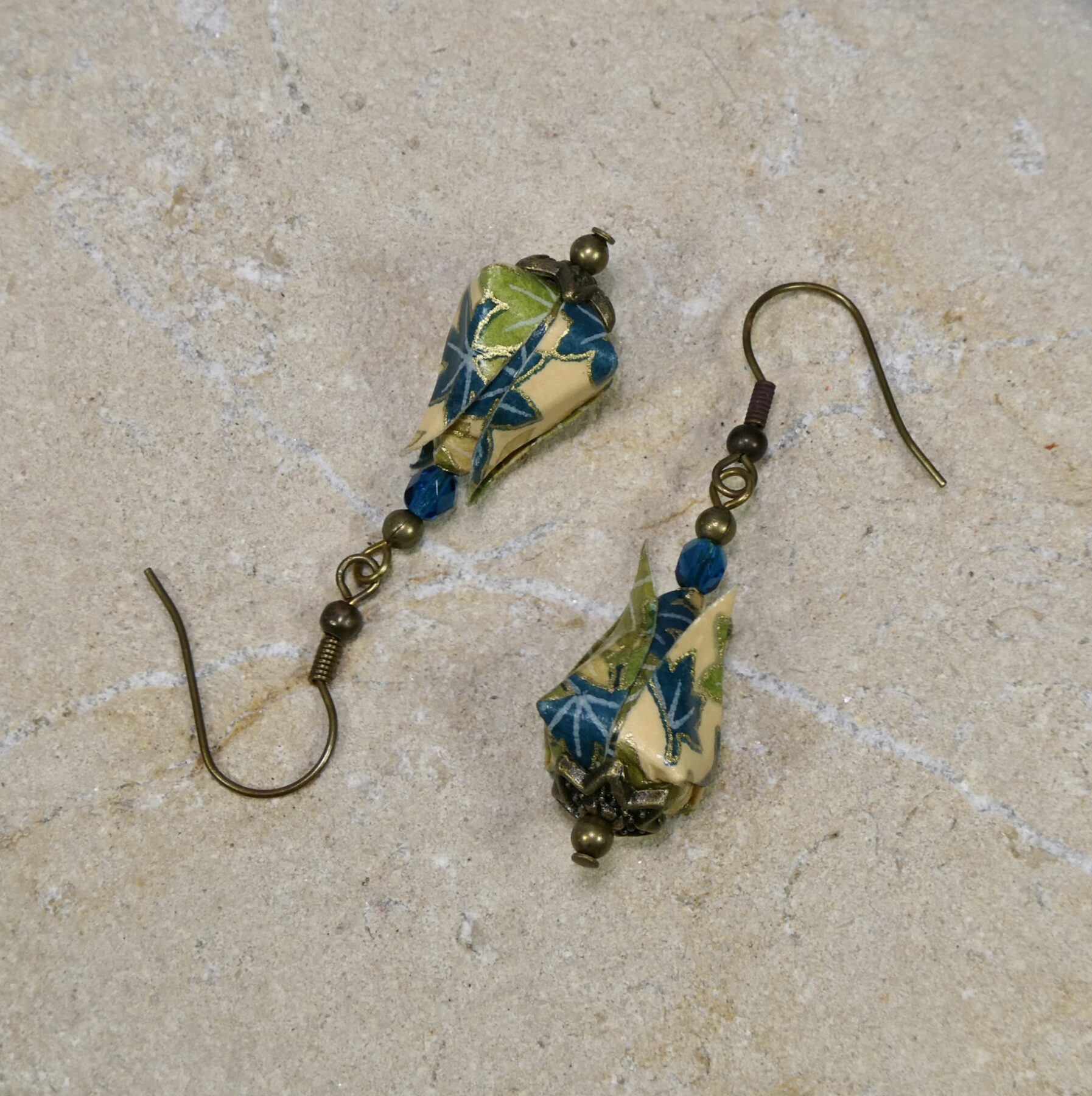 Boucles d’oreilles origami lotus en papier japonais Chiyogami