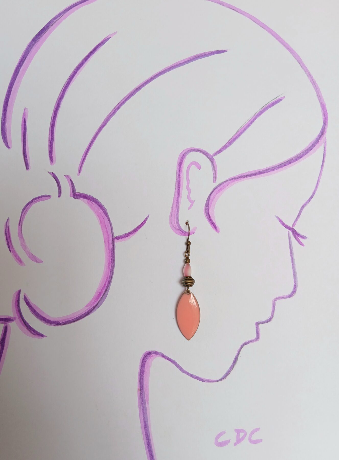 Apportez une touche de romantisme et d’élégance à votre style avec ces boucles d’oreilles pendantes rose, au design fin et lumineux signées CDC-UPCYCLE.