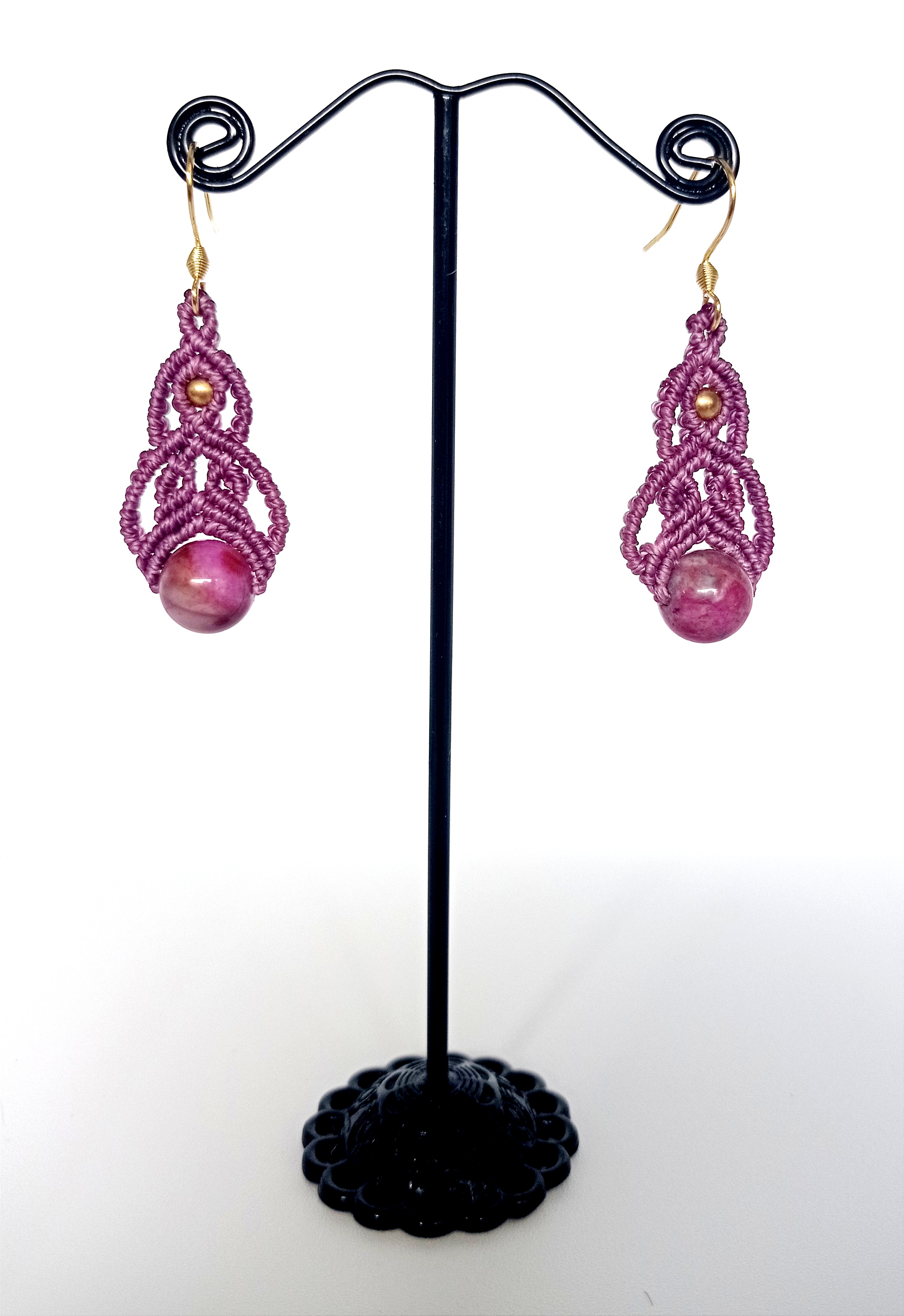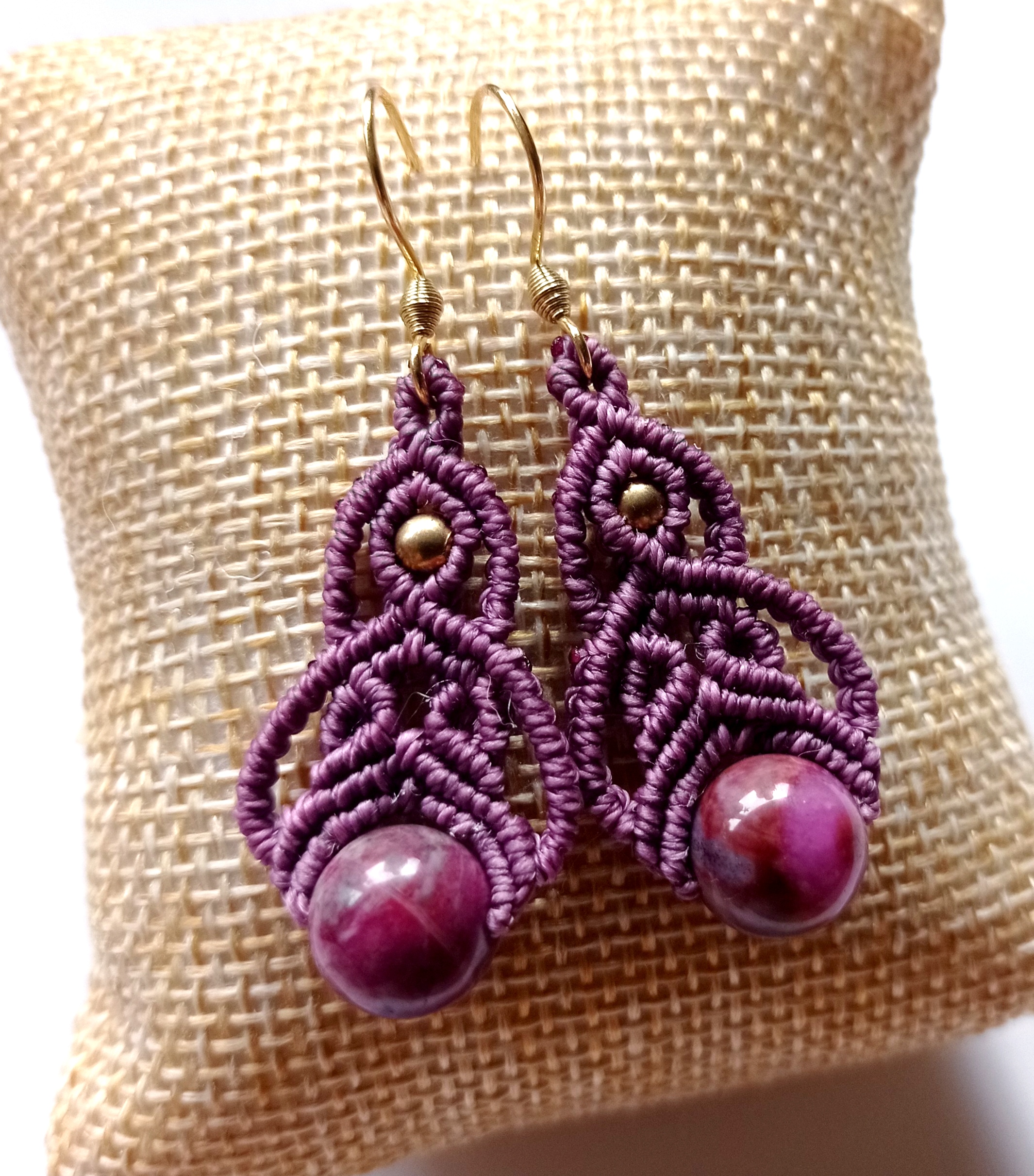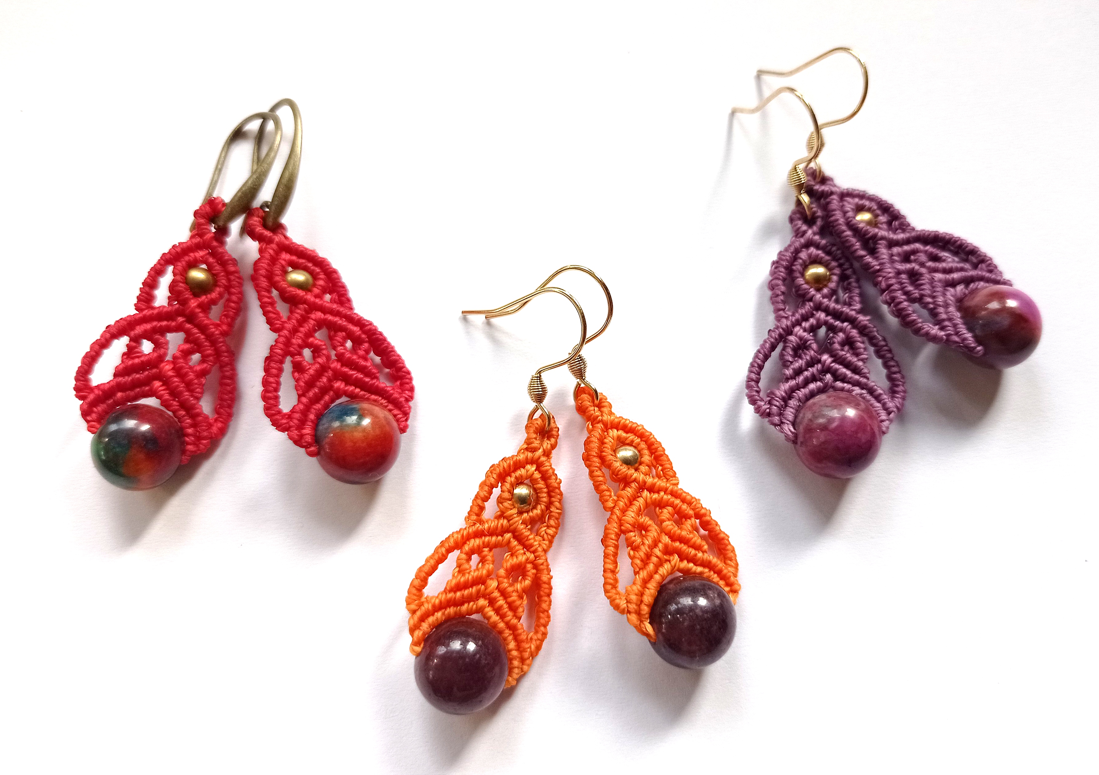 Boucles d’oreilles pendantes pour oreilles percées réalisées en micro macramé.