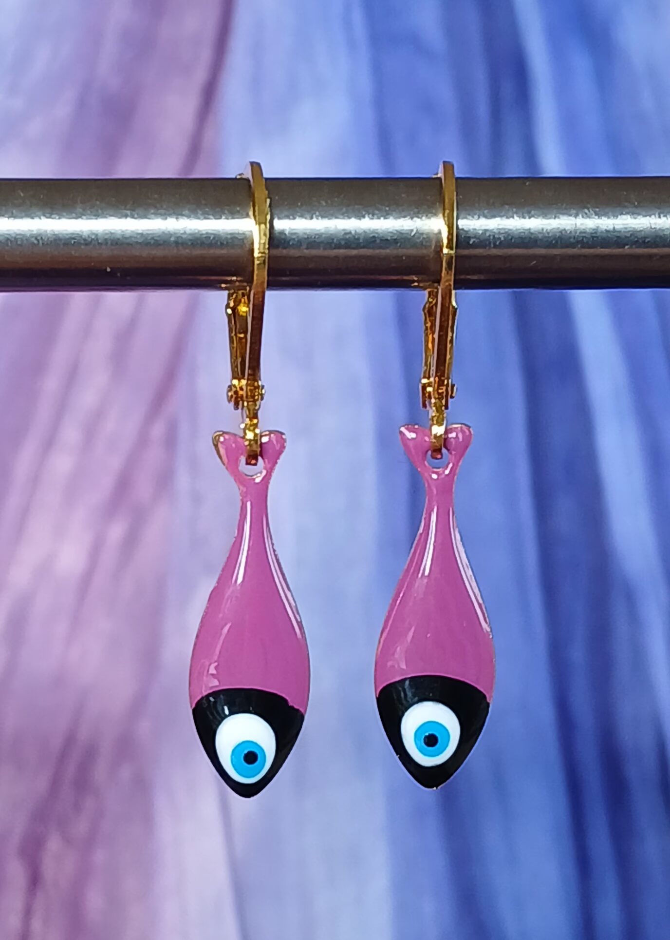 Boucles d’oreilles petit poisson sur crochet doré – légères, singulières et hypoallergéniques Plusieurs coloris disponibles au choix.