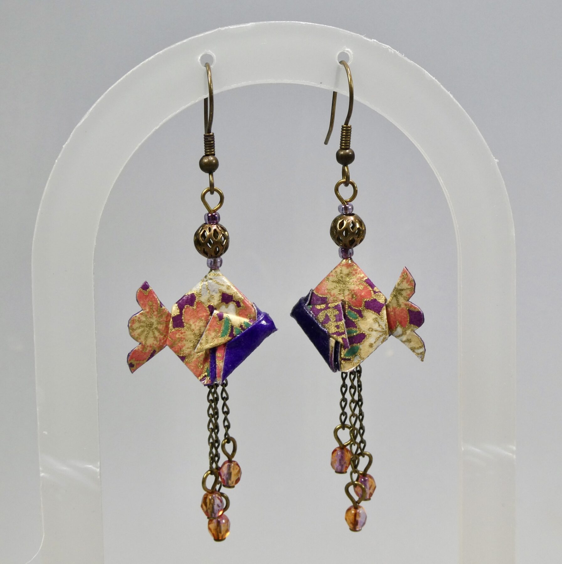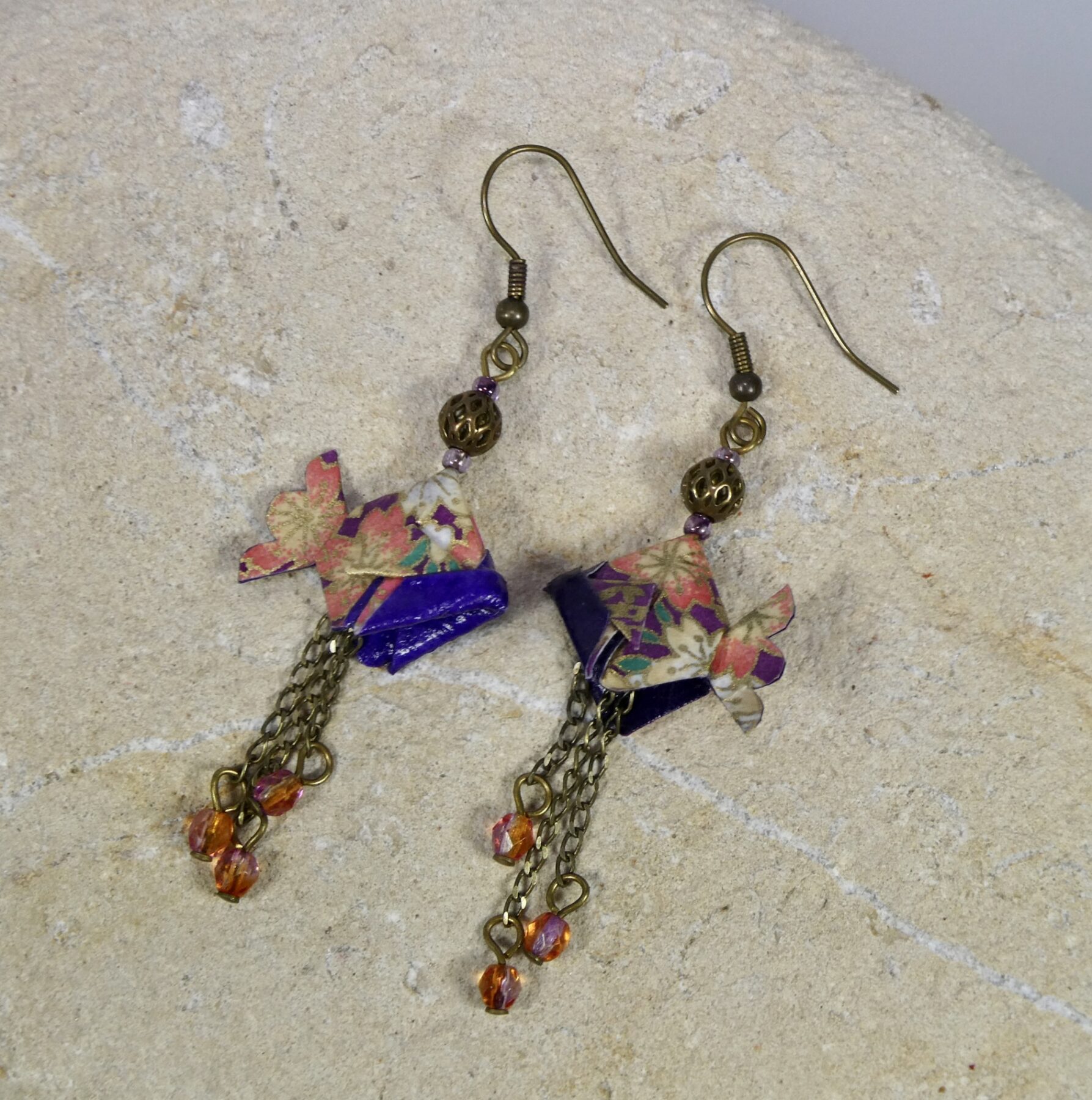 Boucles d’oreilles origami poissons en papier japonais washi Chiyogami