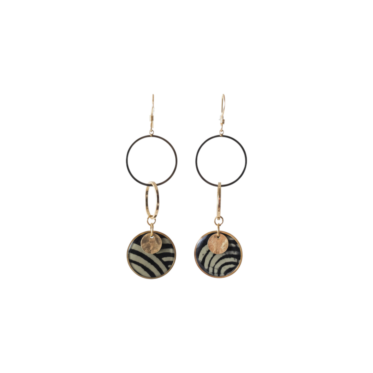 Boucles d’oreilles Saṅgha — Papier Népalais noir & gris