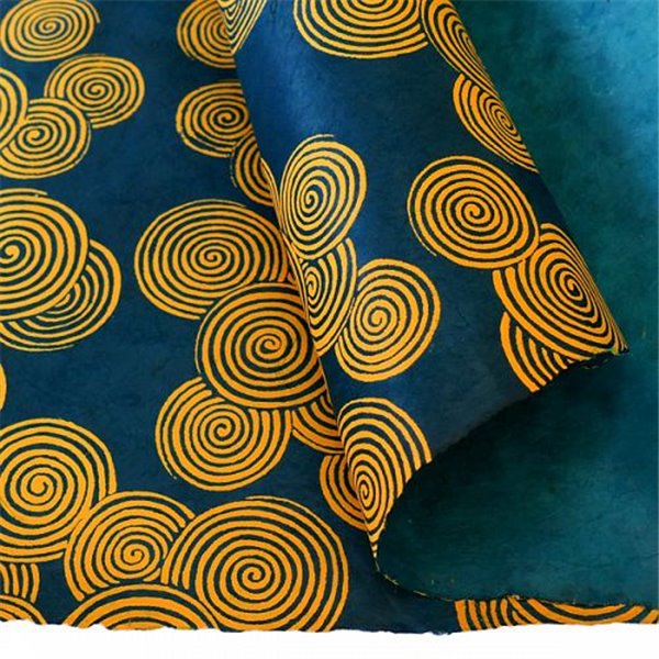 - Contraste Organique : Au cœur du dernier anneau se niche le papier népalais. Son motif, mariant un bleu-vert profond (type bleu canard ou pétrole) à la chaleur terreuse du marron caramel, offre un contraste vibrant qui illumine le visage.