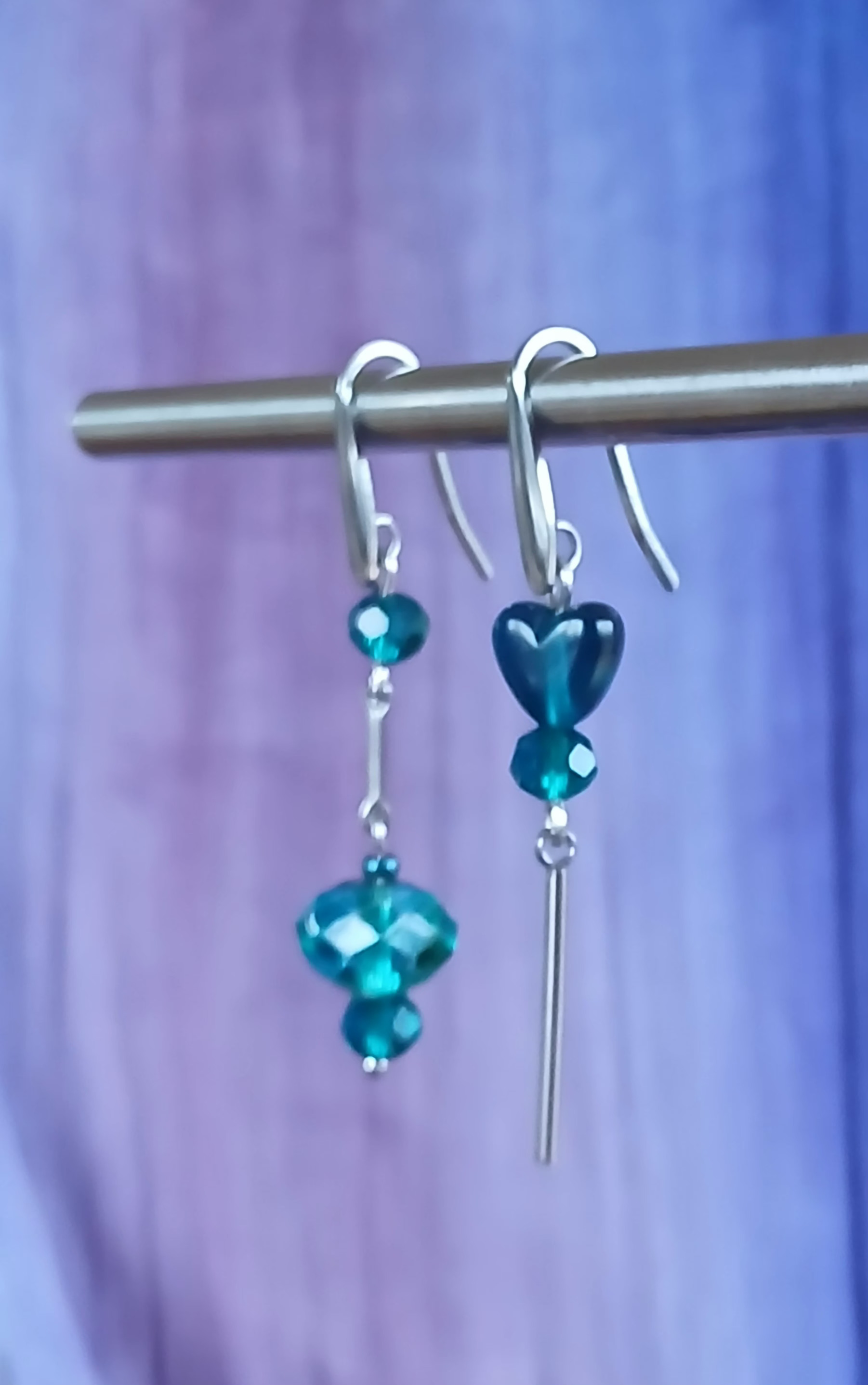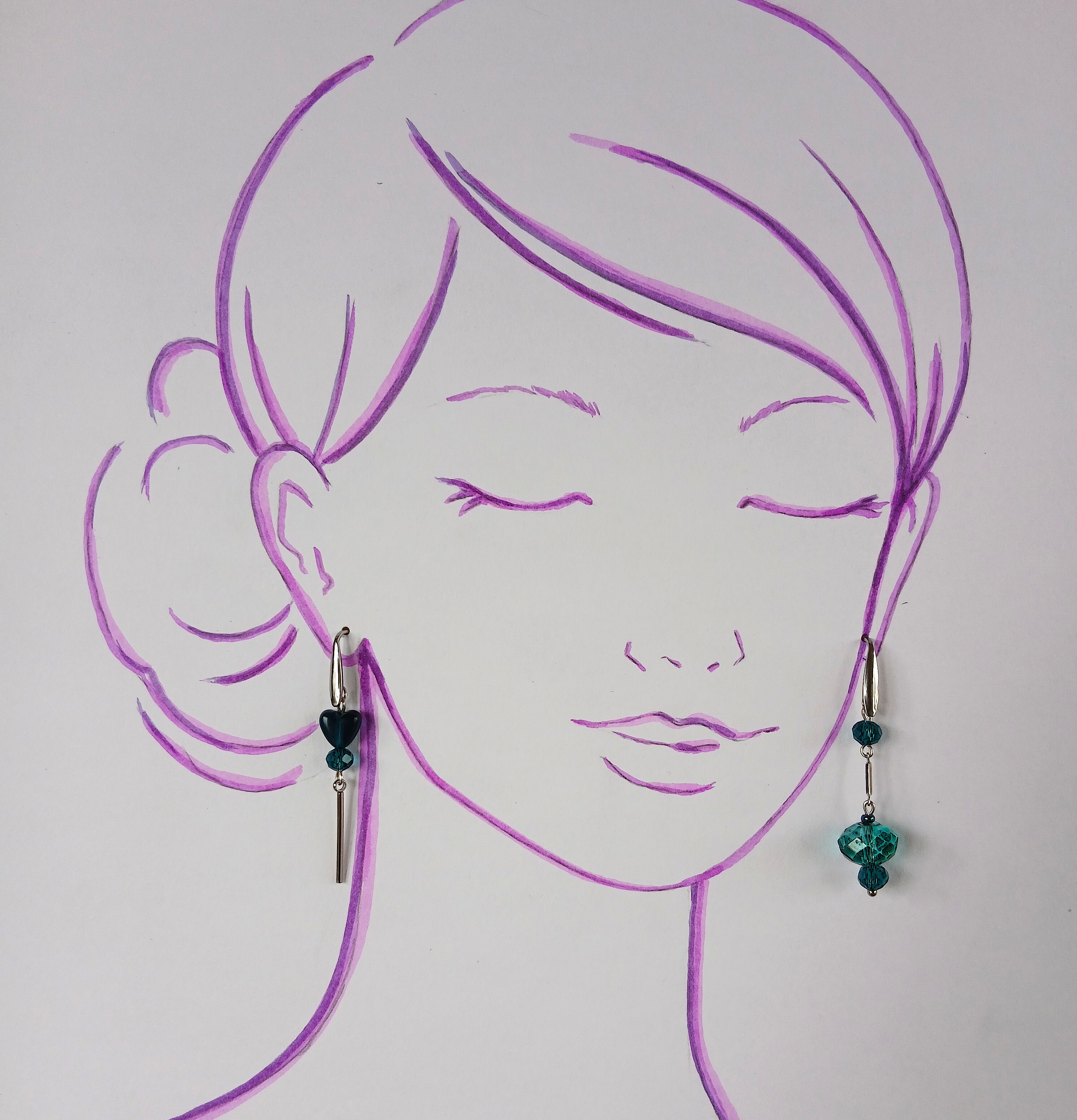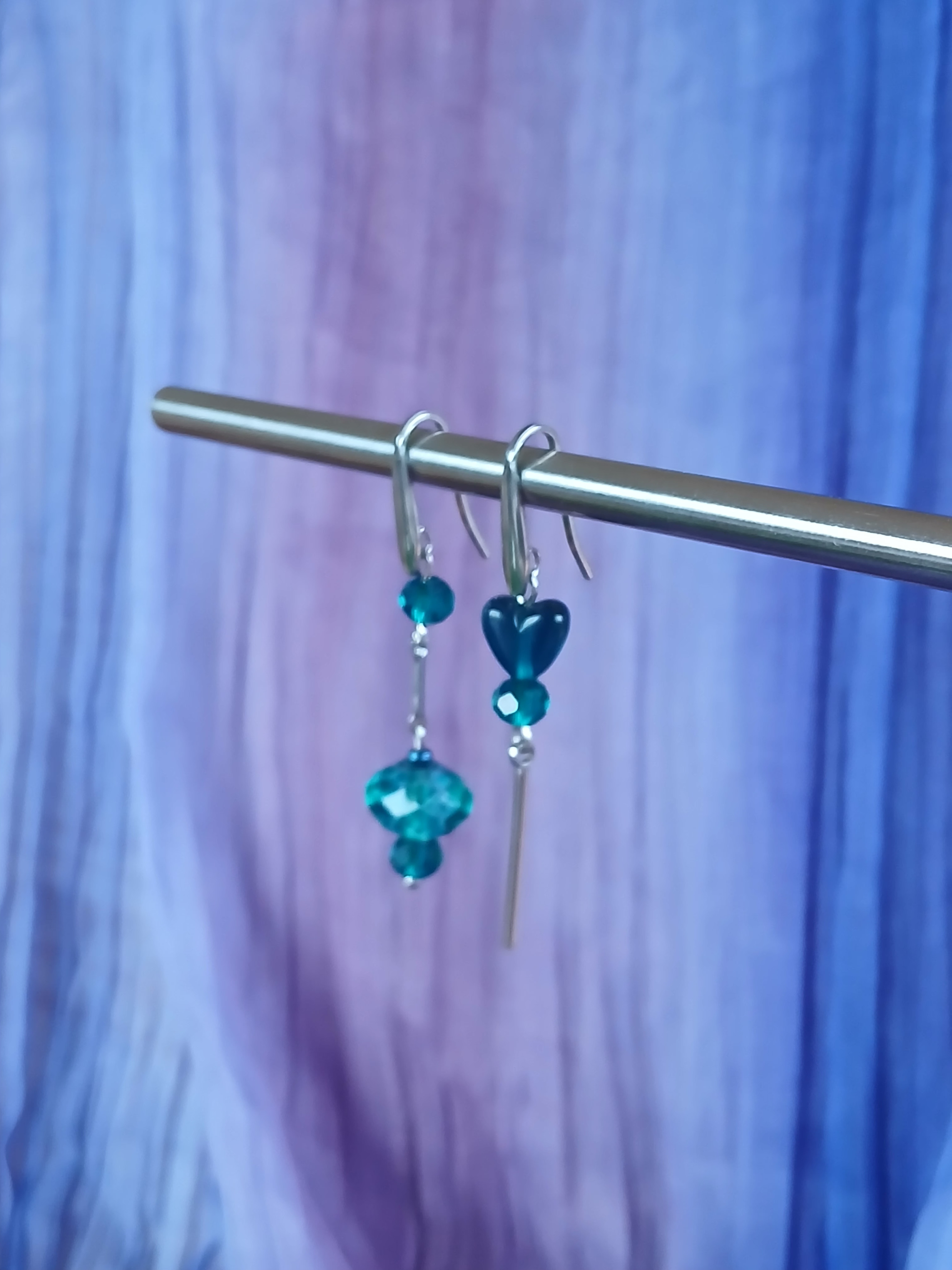 Composées de perles aux nuances bleu canard, givrées ou facettées, associées à des éléments argentés brillants, ces boucles d’oreilles offrent un équilibre parfait entre élégance et originalité. La perle facettée bleu lumineux reflète la lumière, tandis que la tige fine allonge délicatement la silhouette.
