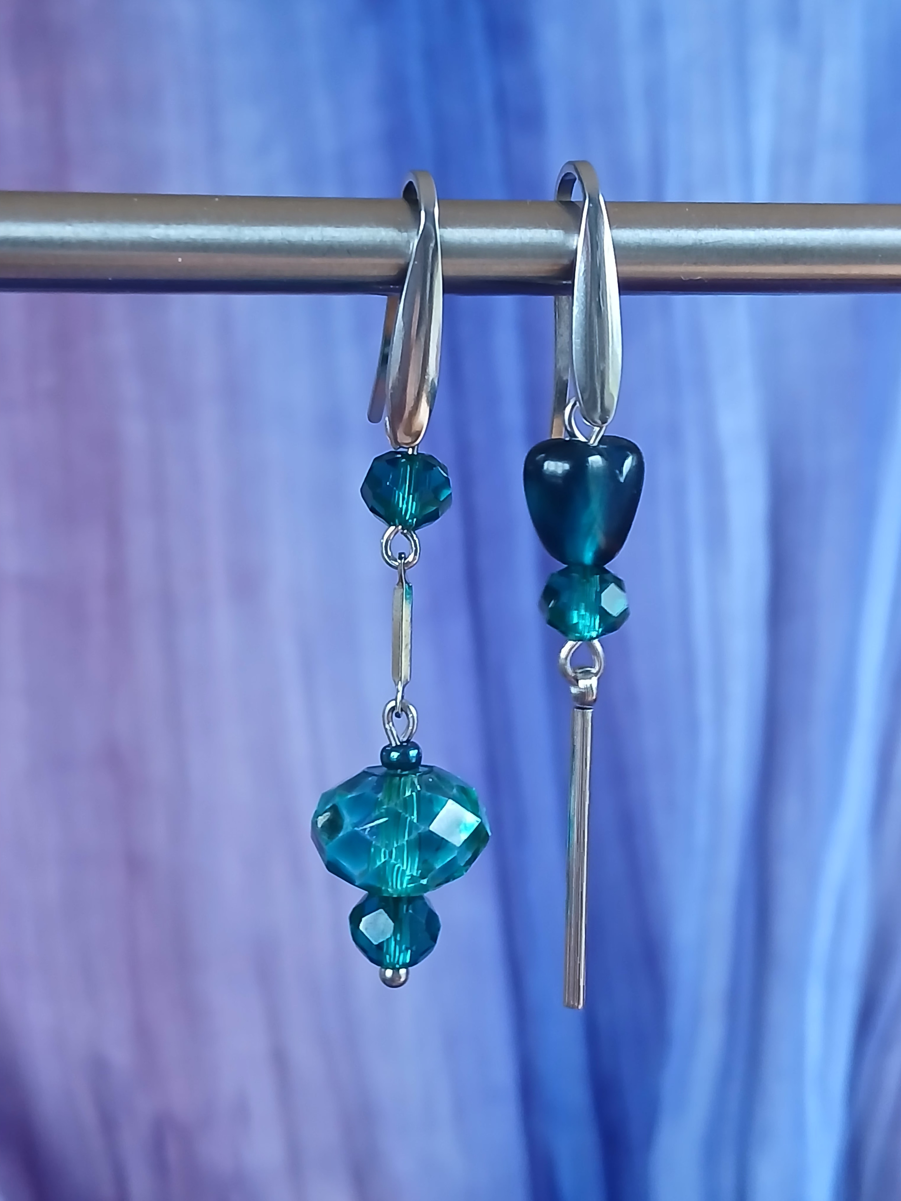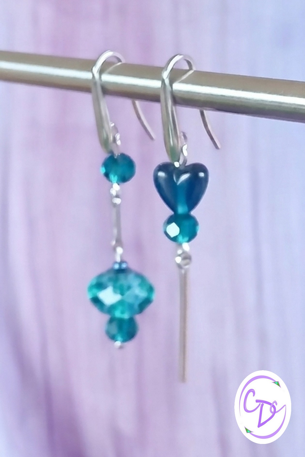 Apportez une touche de sophistication à votre tenue avec ces boucles d’oreilles pendantes bleues en perles, un bijou moderne et raffiné au design asymétrique.