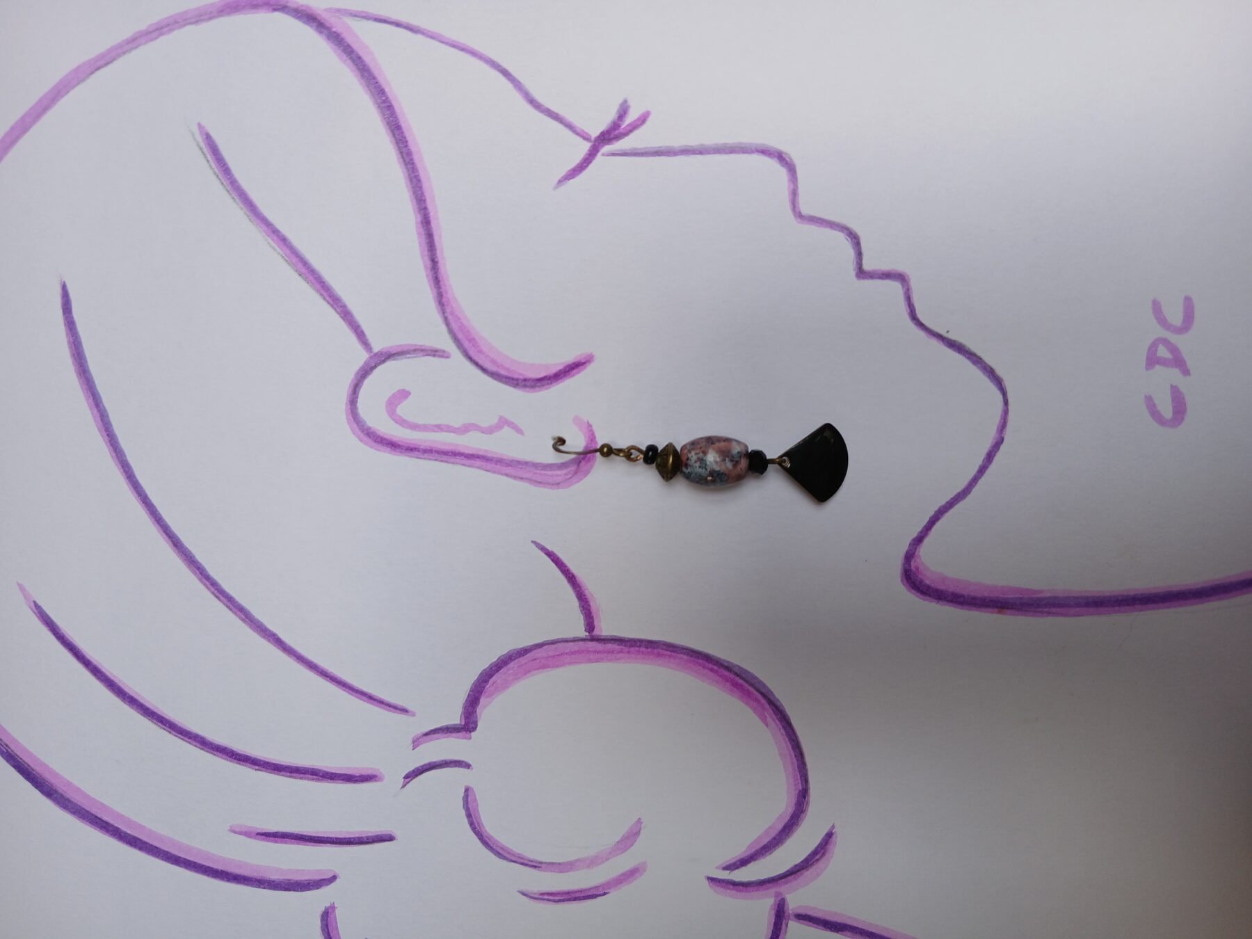 Craquez pour ces Boucles d’oreilles CDC-UPCYCLE au style bohême chic, très élégantes jouant sur l’harmonie des couleurs. Composées d’une pampille émaillée en forme d’éventail d’un noir brillant, réhaussée d’une perle ovale noir nuancée rose et parme, ces boucles offrent un équilibre parfait entre modernité et esprit artisanal, la finition patinée des éléments en bronze apportant une touche vintage et un style bohême.