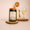 C’est ensemble, avec mon épouse, que nous avons voulu rendre hommage à ce vin emblématique en imaginant une bougie parfumée artisanale faite main, coulée dans une véritable bouteille de vin recyclée. Chaque note olfactive rappelle la richesse du raisin Viognier, réputé pour ses arômes d’abricot, de fleurs blanches et de miel.