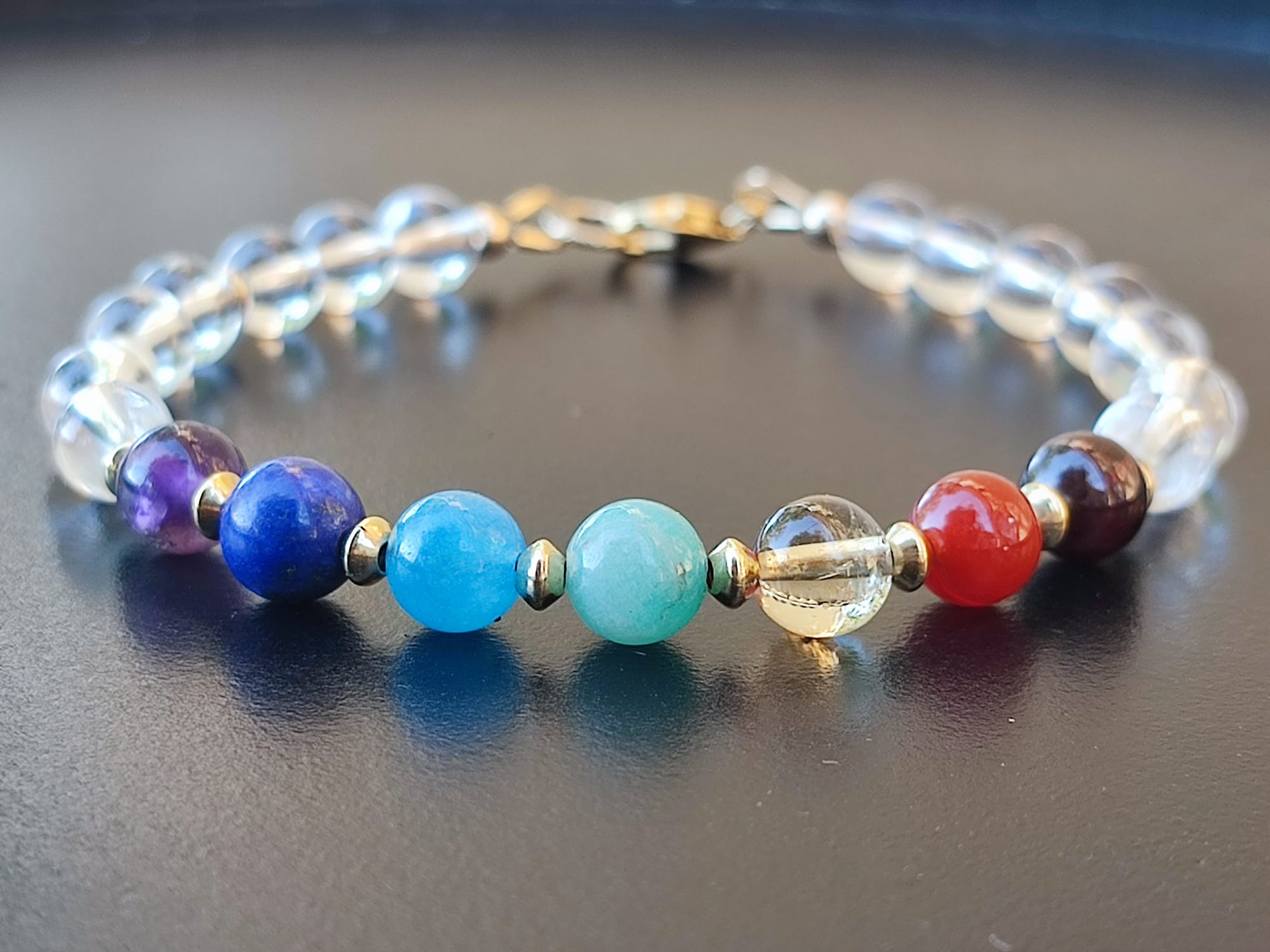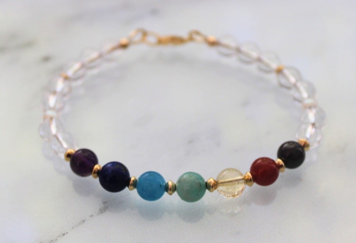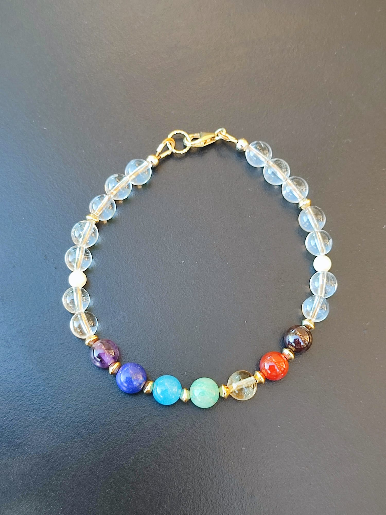 Ce bracelet coloré et lumineux est un bijou énergétique unique, conçu pour réaligner les 7 chakras. Les pierres naturelles sélectionnées diffusent une vibration positive qui favorise la sérénité, la vitalité et l’harmonie intérieure.