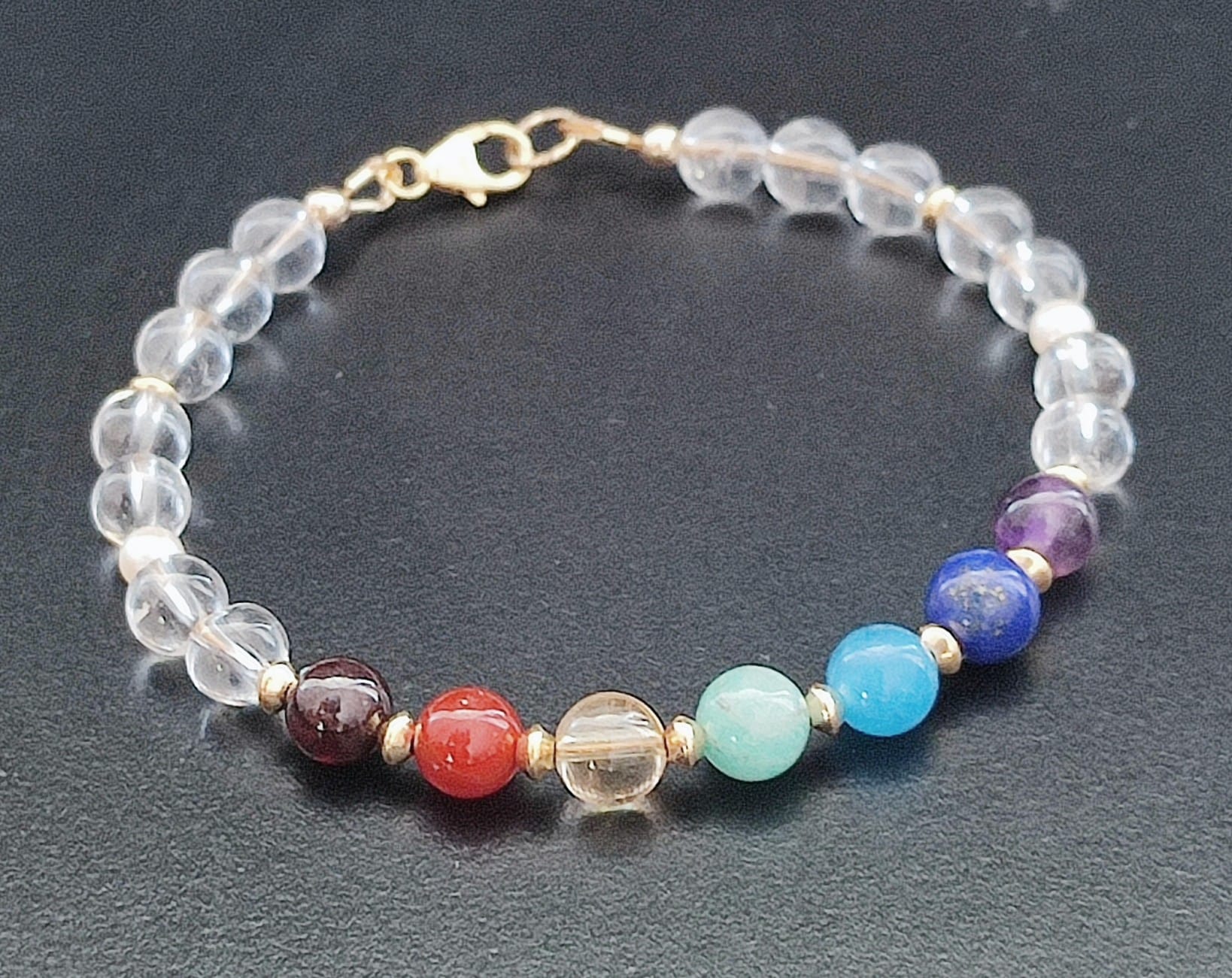 🌈 Bracelet Équilibre des 7 Chakras – version dorée en Gold filled
