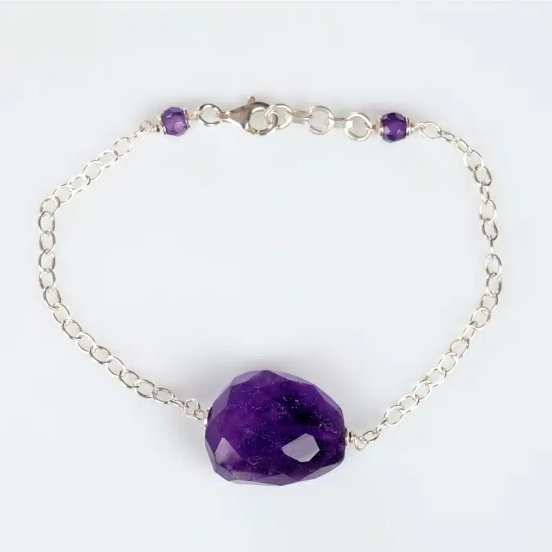 Ce Bracelet pour femme peut parfaire n’importe quelle tenue. Nous vous conseillons de faire un rappel avec un collier ou des boucles d’oreilles en argent et améthyste.