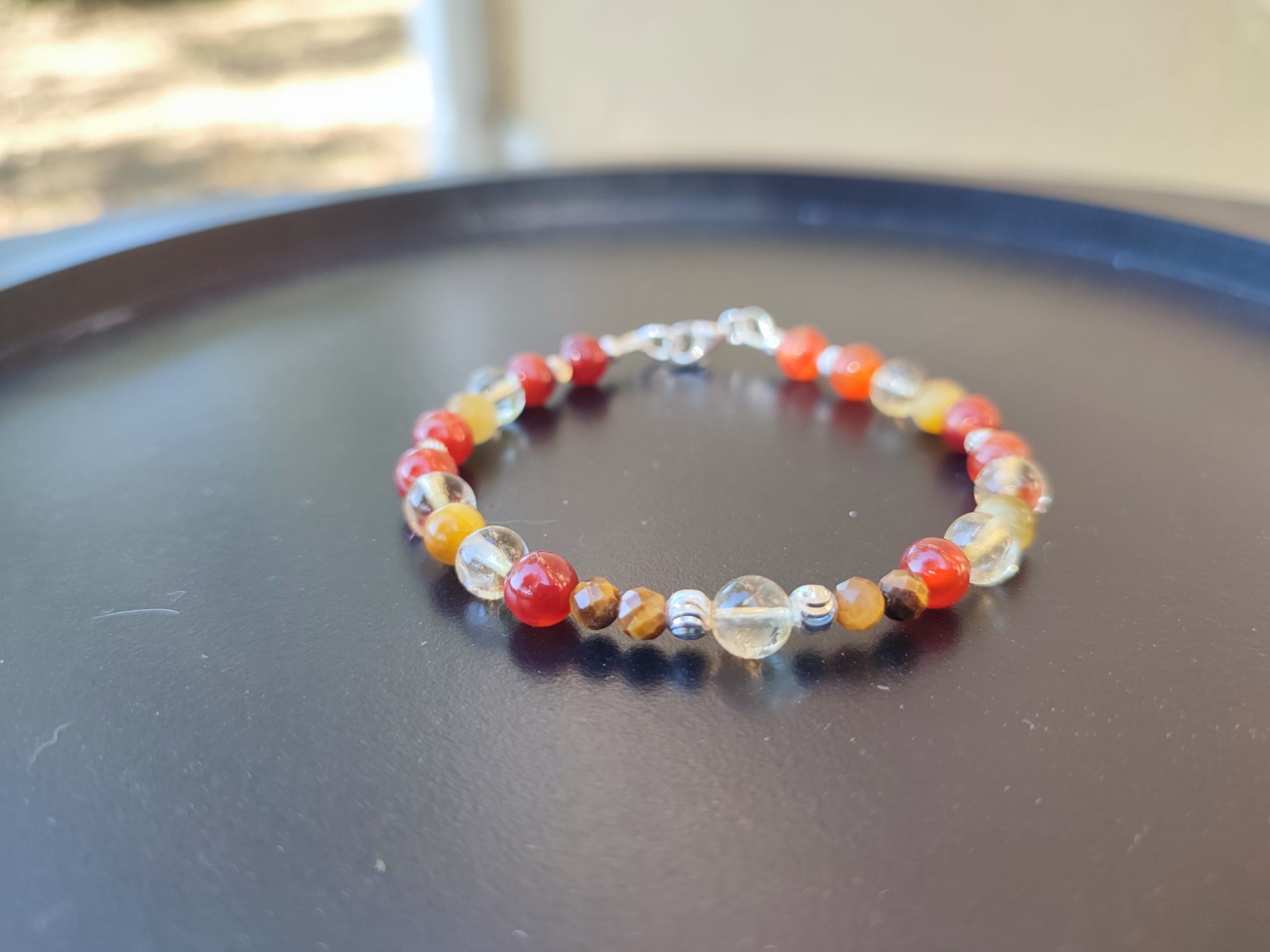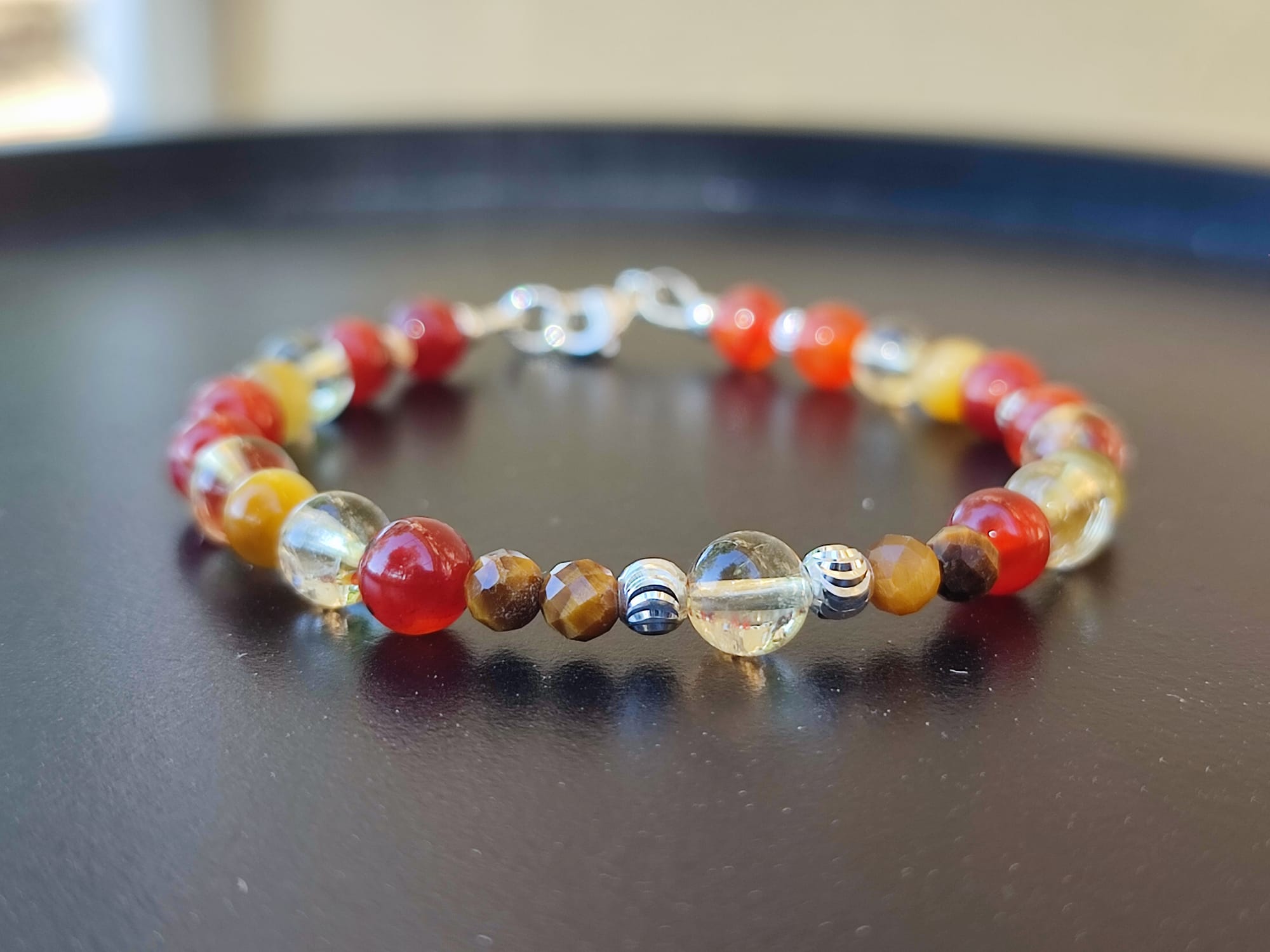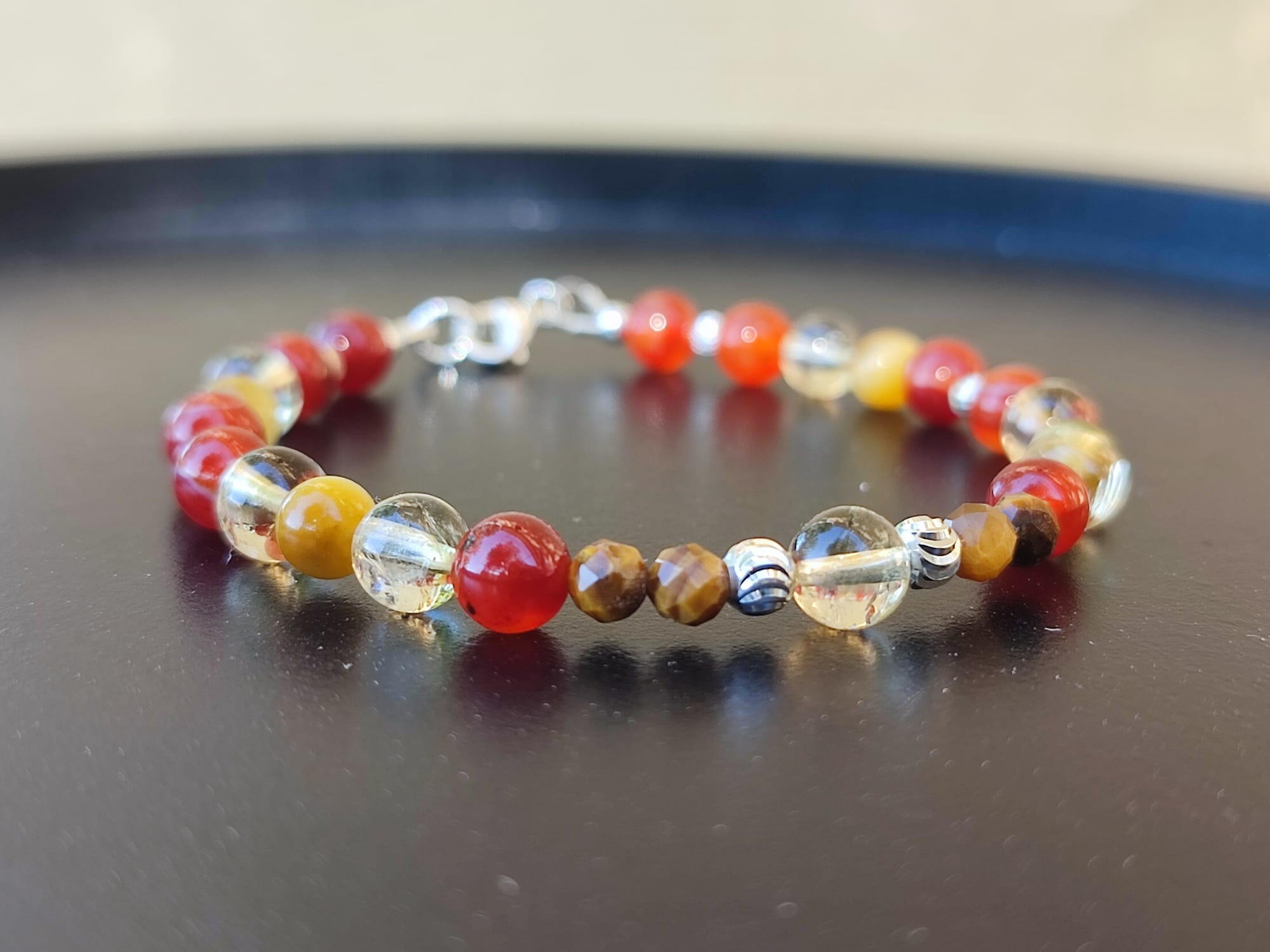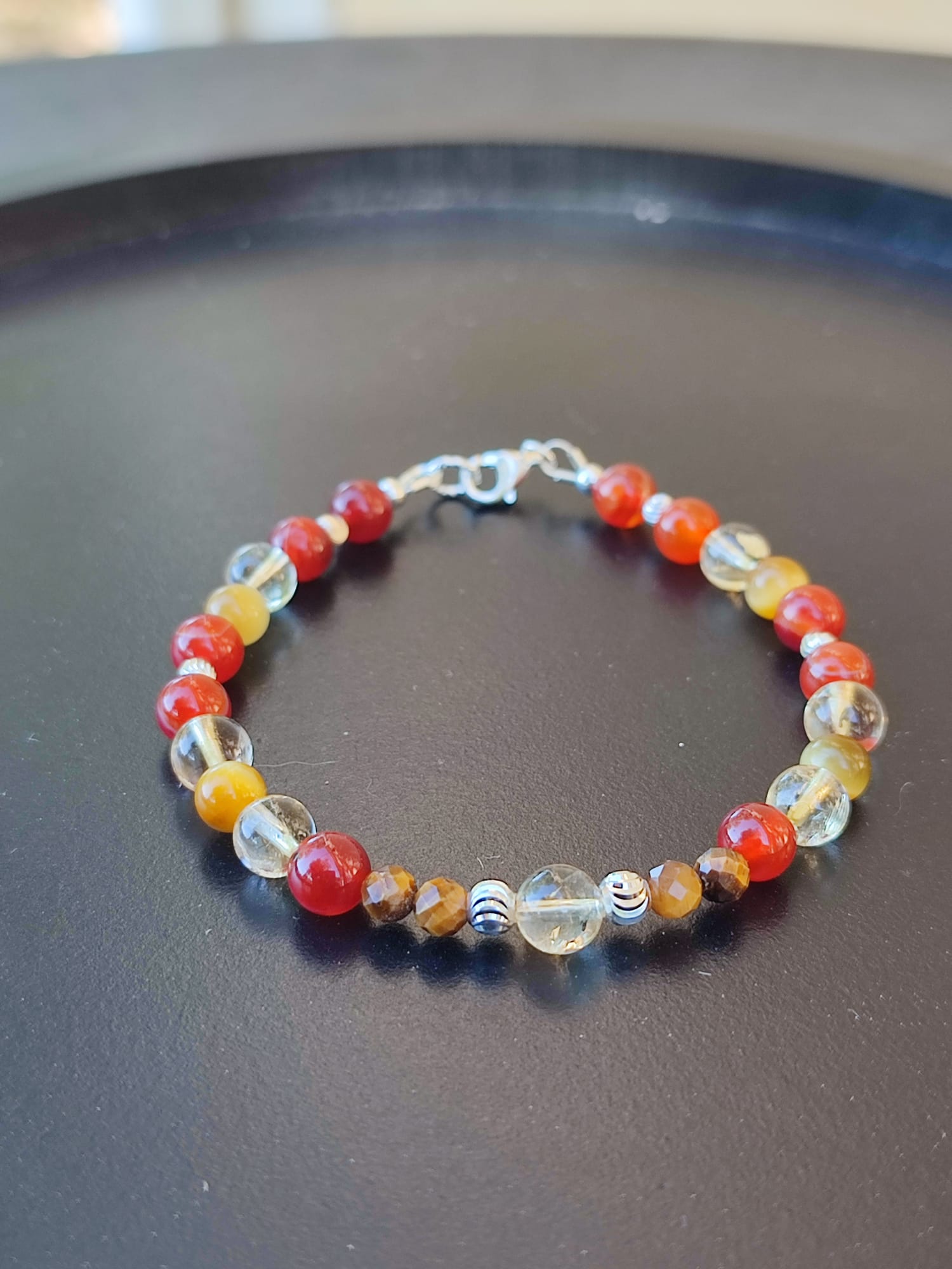 Pierres naturelles : Cornaline, Citrine, Œil de tigre.