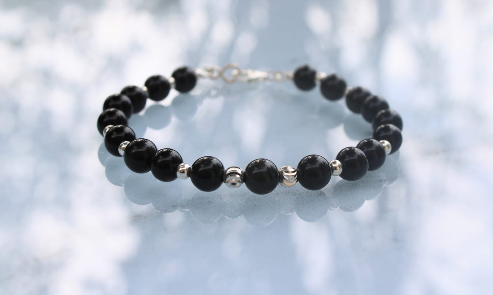 Bracelet raffiné en obsidienne œil céleste véritable ( appelée aussi obsidienne arc en ciel), pierre aux reflets chatoyants verts et violets selon la lumière. Les perles naturelles de 6 mm sont montées avec des apprêts en argent 925 pour un bijou durable, élégant et intemporel.