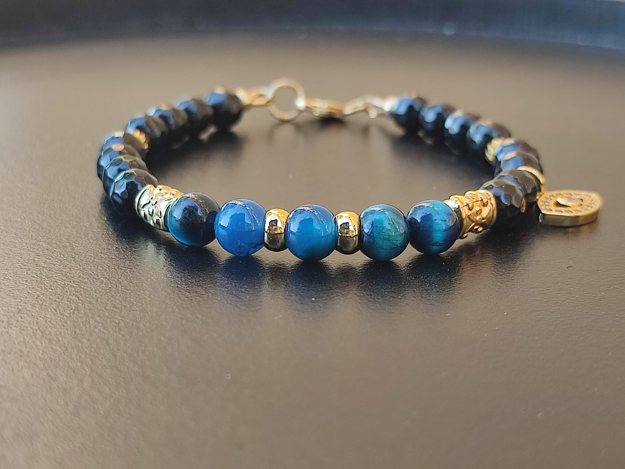 Bracelet œil de tigre bleu et onyx noir – Protection et intuition