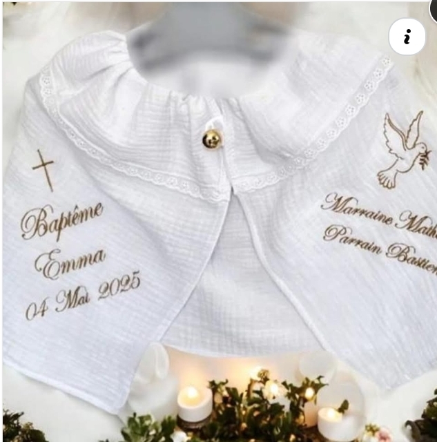 Couleurs de broderie proposées : or, argent, blanc, ivoire, beige, terracotta, rose clair, rose fushia, bleu ciel, bleu roy, bleu marine, turquoise, chocolat, gris perle, vert tilleul, corail, peche, vert sapin, kaki, vert d eau.