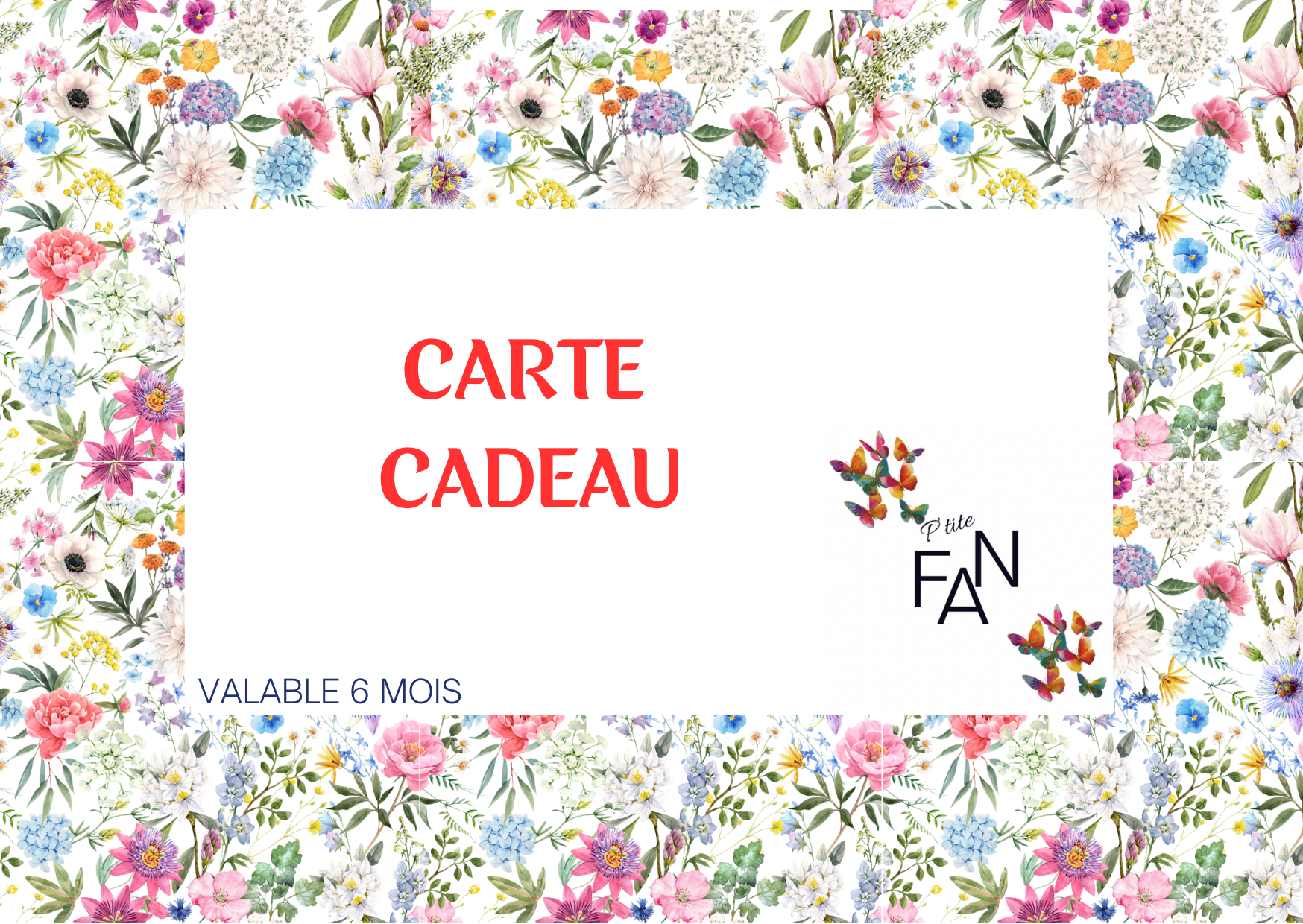La CARTE CADEAU est valable 6 mois sur tout le site à compter de la date d’achat de celle-ci.