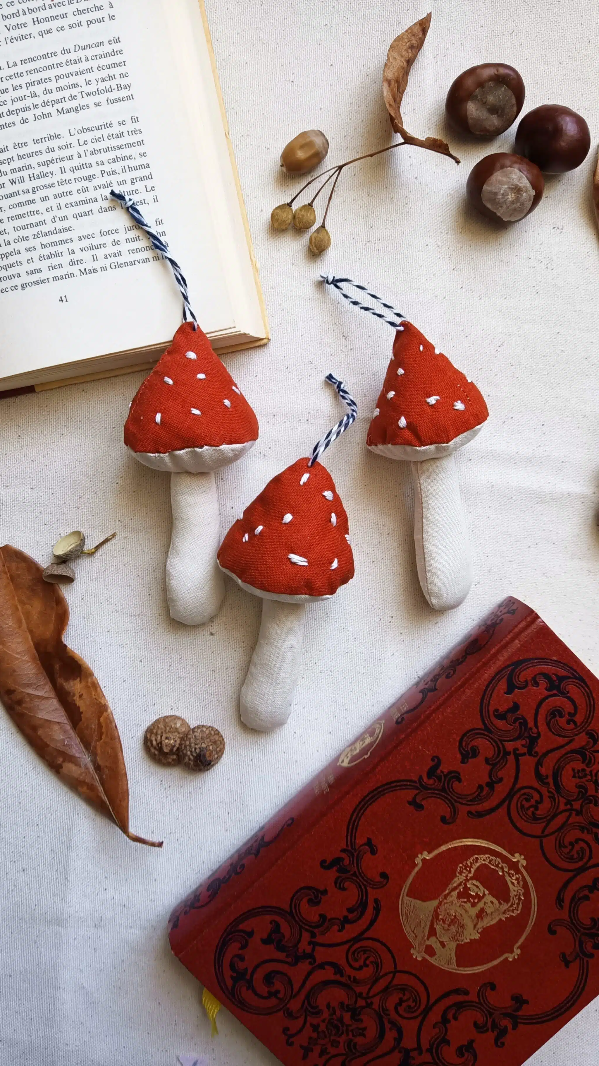 Les champignons sont décoratifs, ils peuvent être suspendus ou accrochés dans un sapin par exemple.
