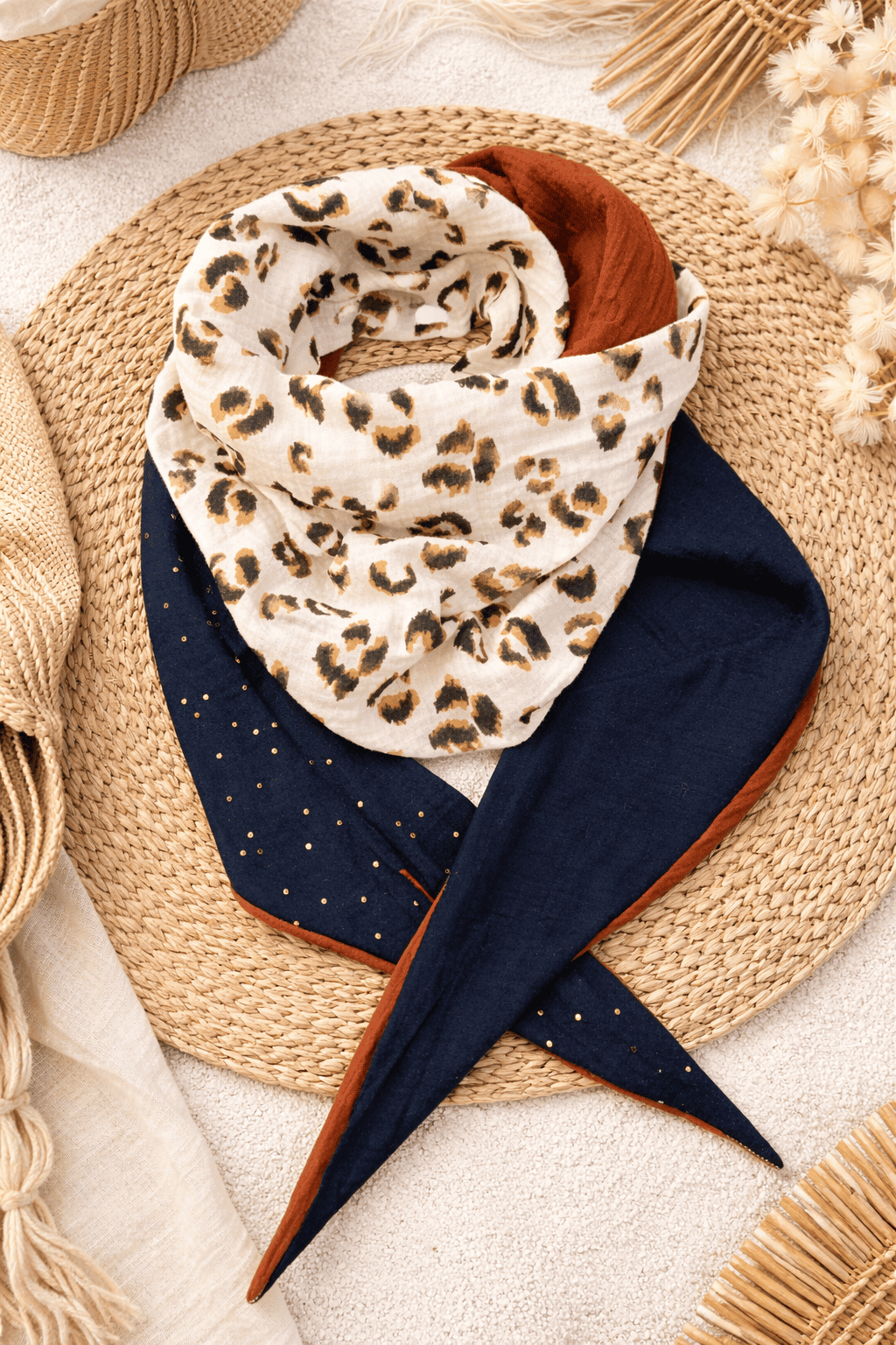 Nos chèches sont pensés pour s’adapter à toutes vos envies : portés autour du cou pour un look bohème chic, sur les épaules pour les soirées fraîches, ou simplement comme accessoire pour sublimer une tenue.