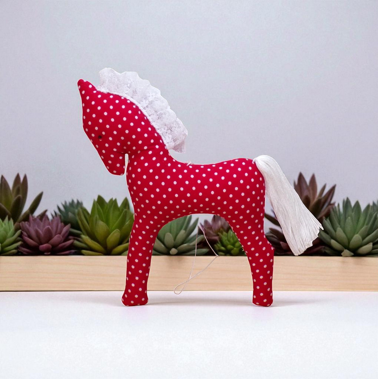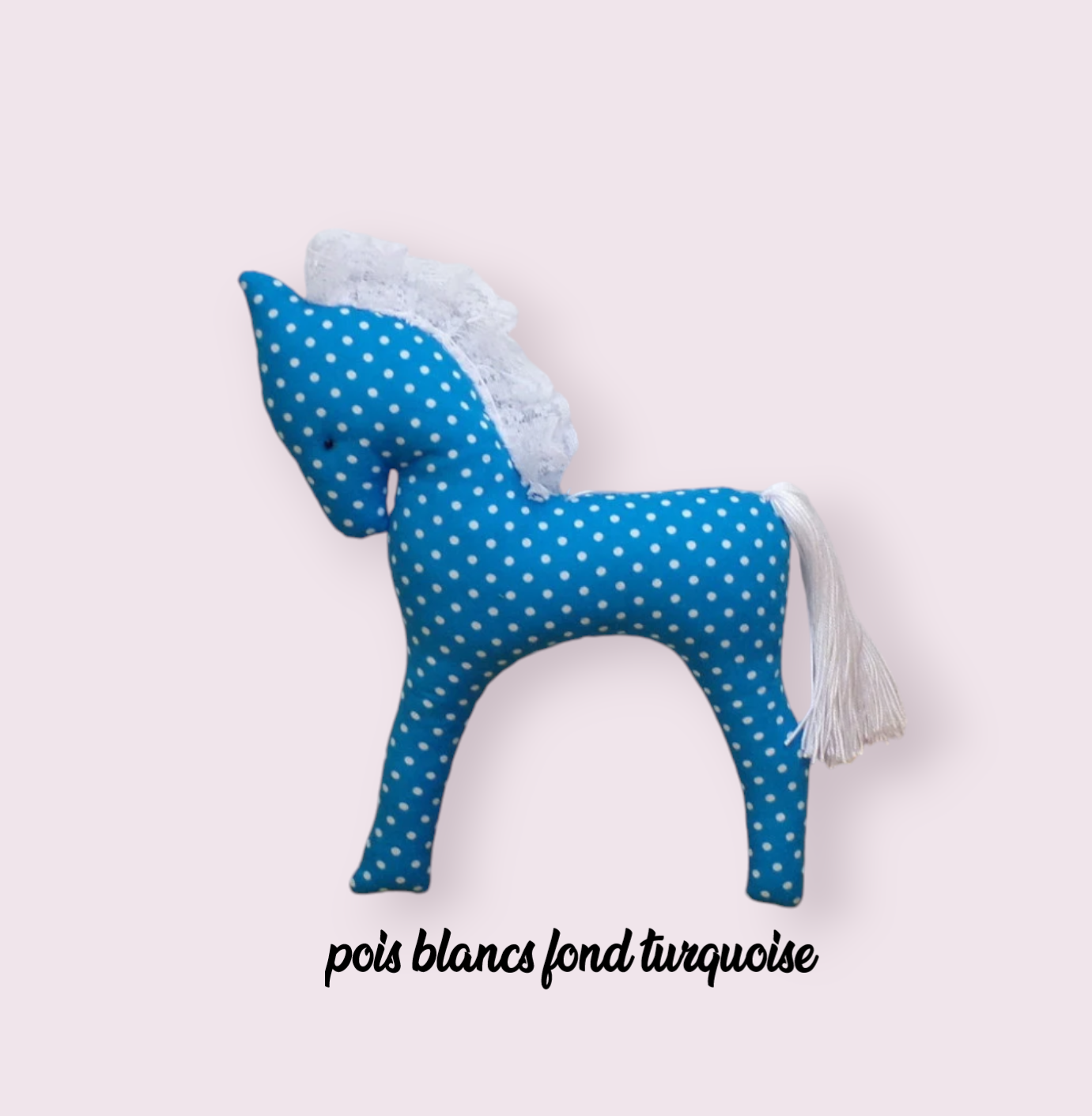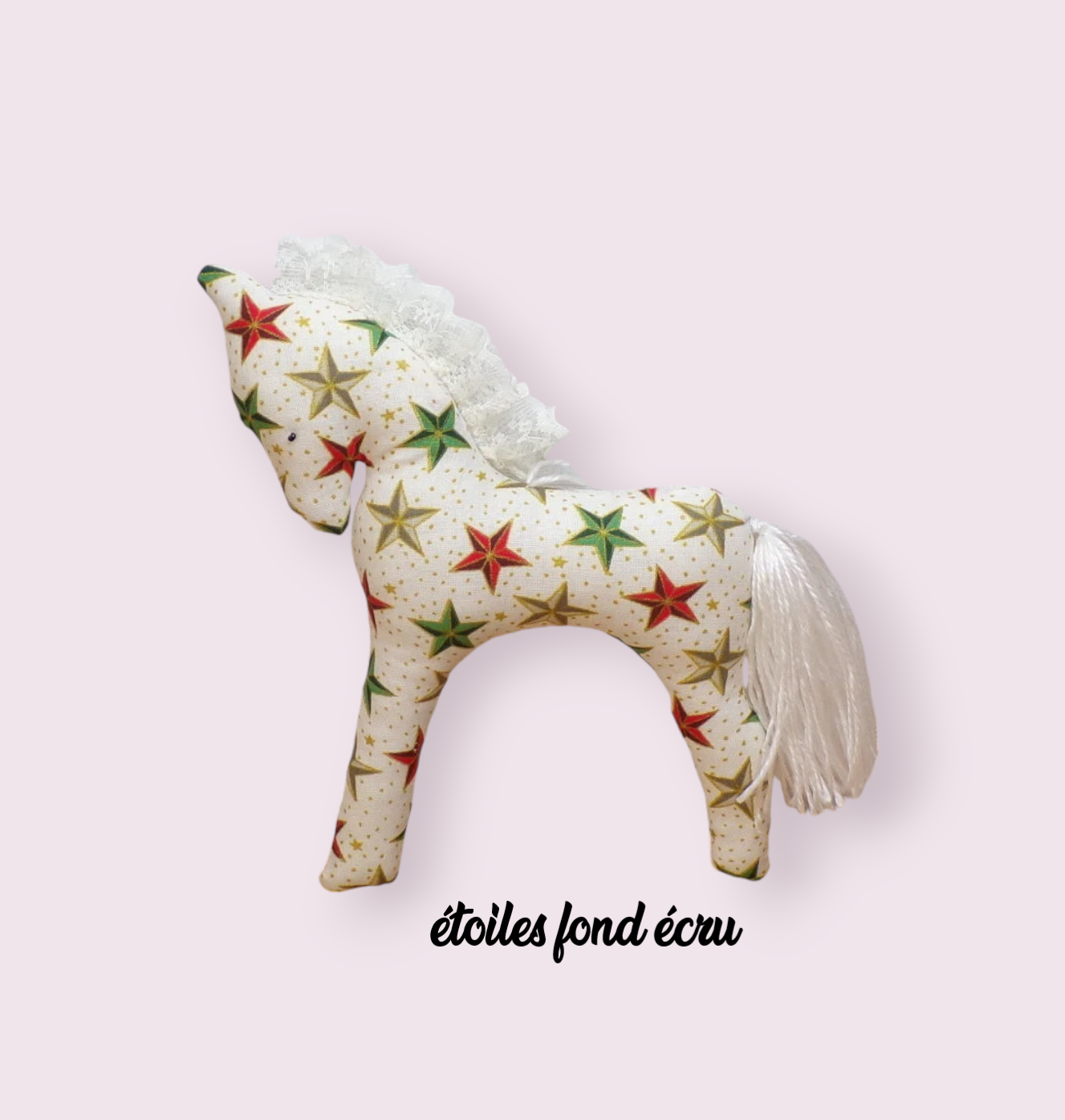 Ces petits chevaux à suspendre sont cousus dans du tissu 100 % coton dont le coloris est au choix.
