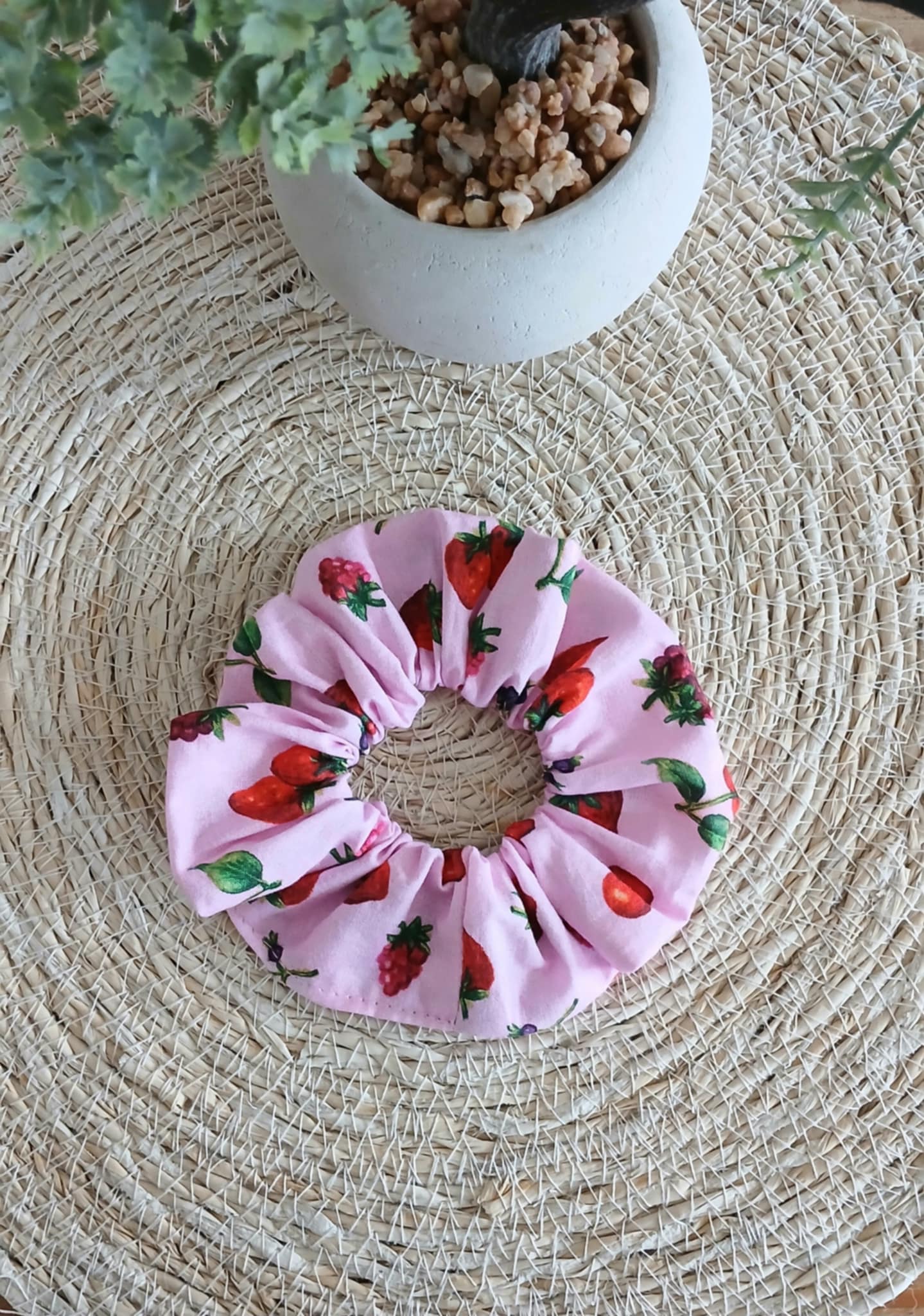 Craquez pour la douceur fruitée du chouchou Berry Sweet ! Avec son tissu rose parsemé de fraises, framboises et raisins, il apporte une note joyeuse et gourmande à toutes vos coiffures.