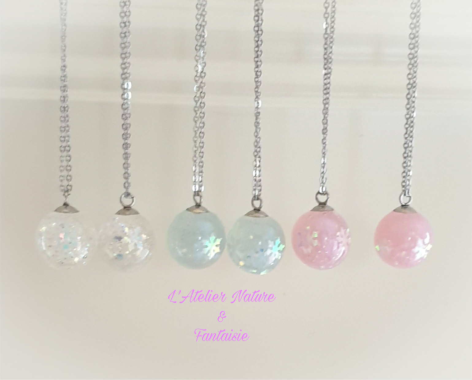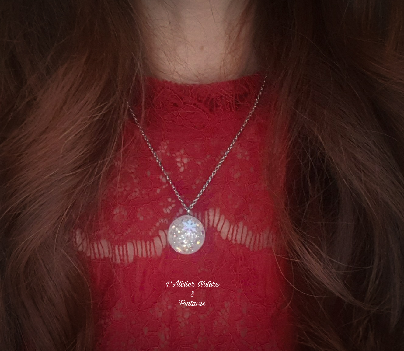 Très Joli Collier fait main avec Flocons de Neige et Paillettes (Transparent Blanc),