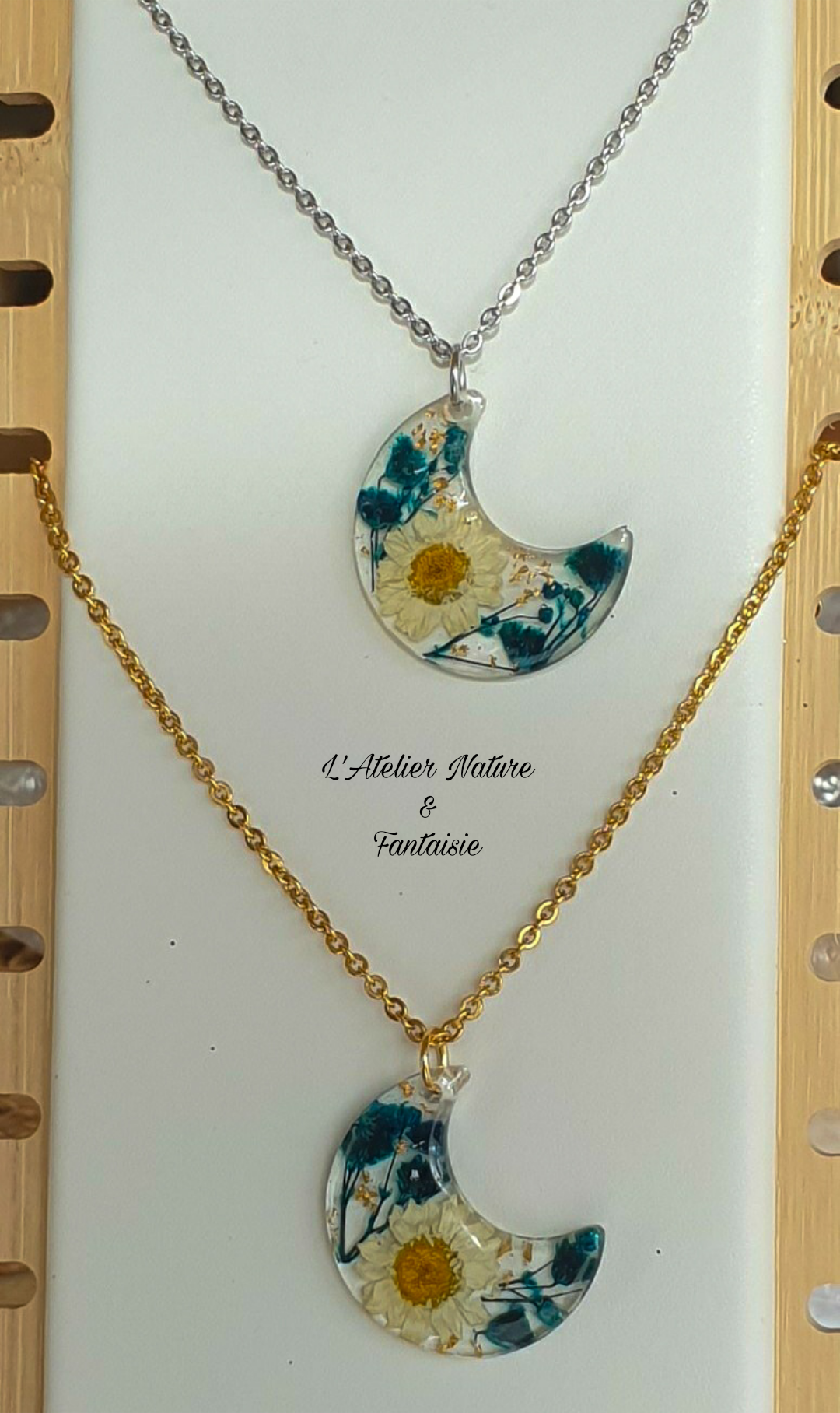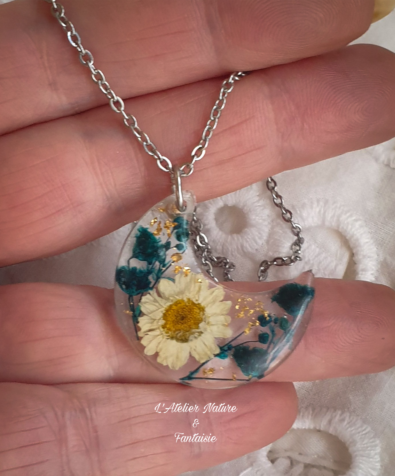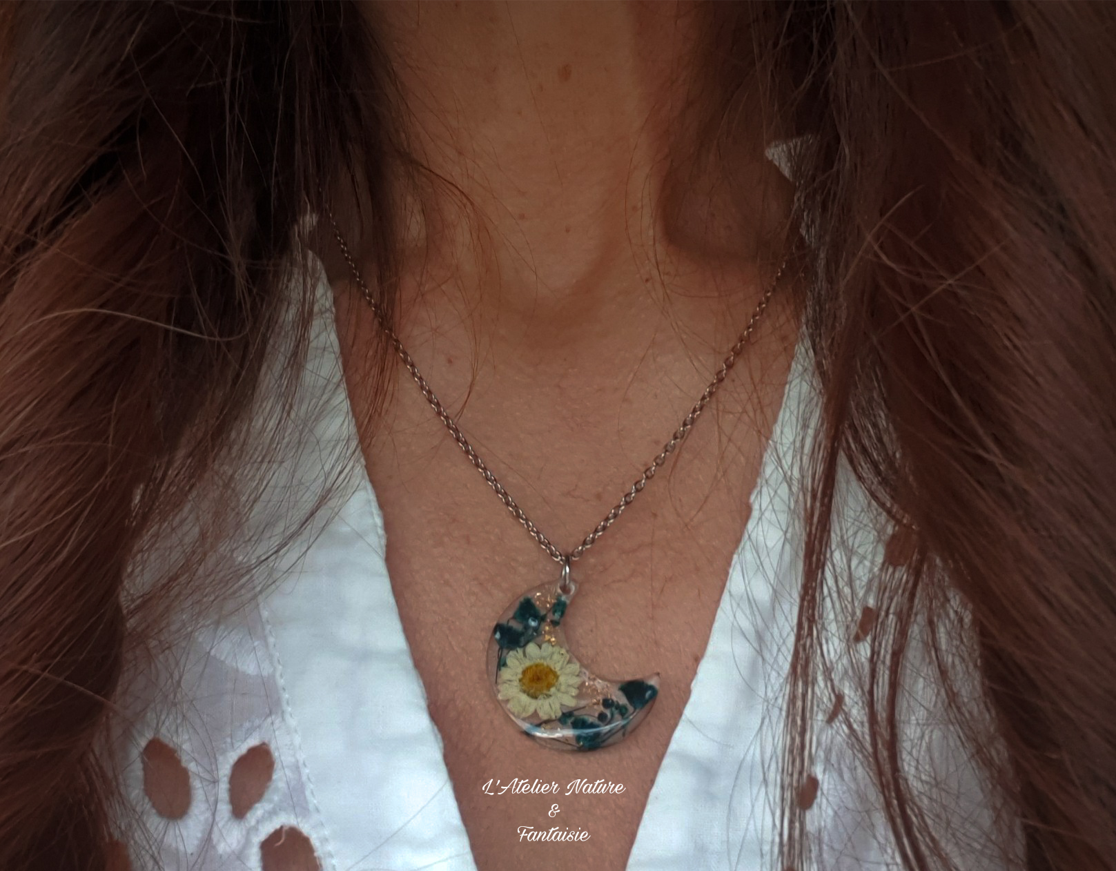Joli Collier fait main avec Fleur de Grande Camomille des Vosges,