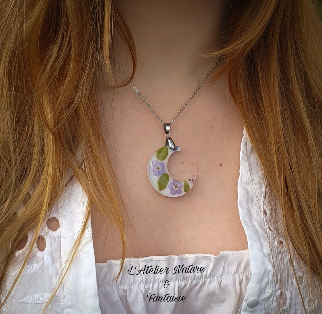 Magnifique collier, fait main, avec des Fleurs de Myosotis des Alpes.