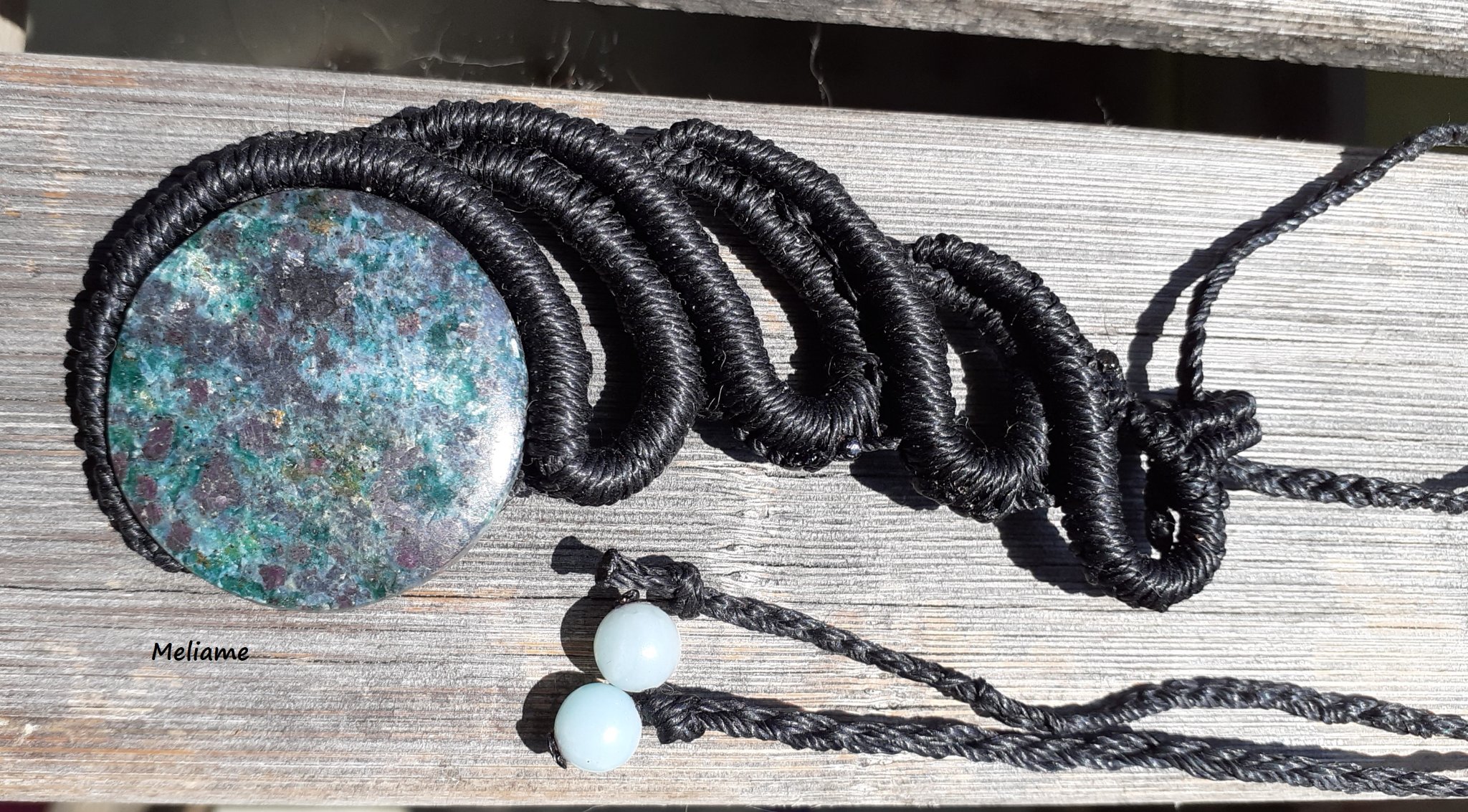 Découvrez ce collier en micro macramé avec une magnifique pierre naturelle Rubis Zoiste.