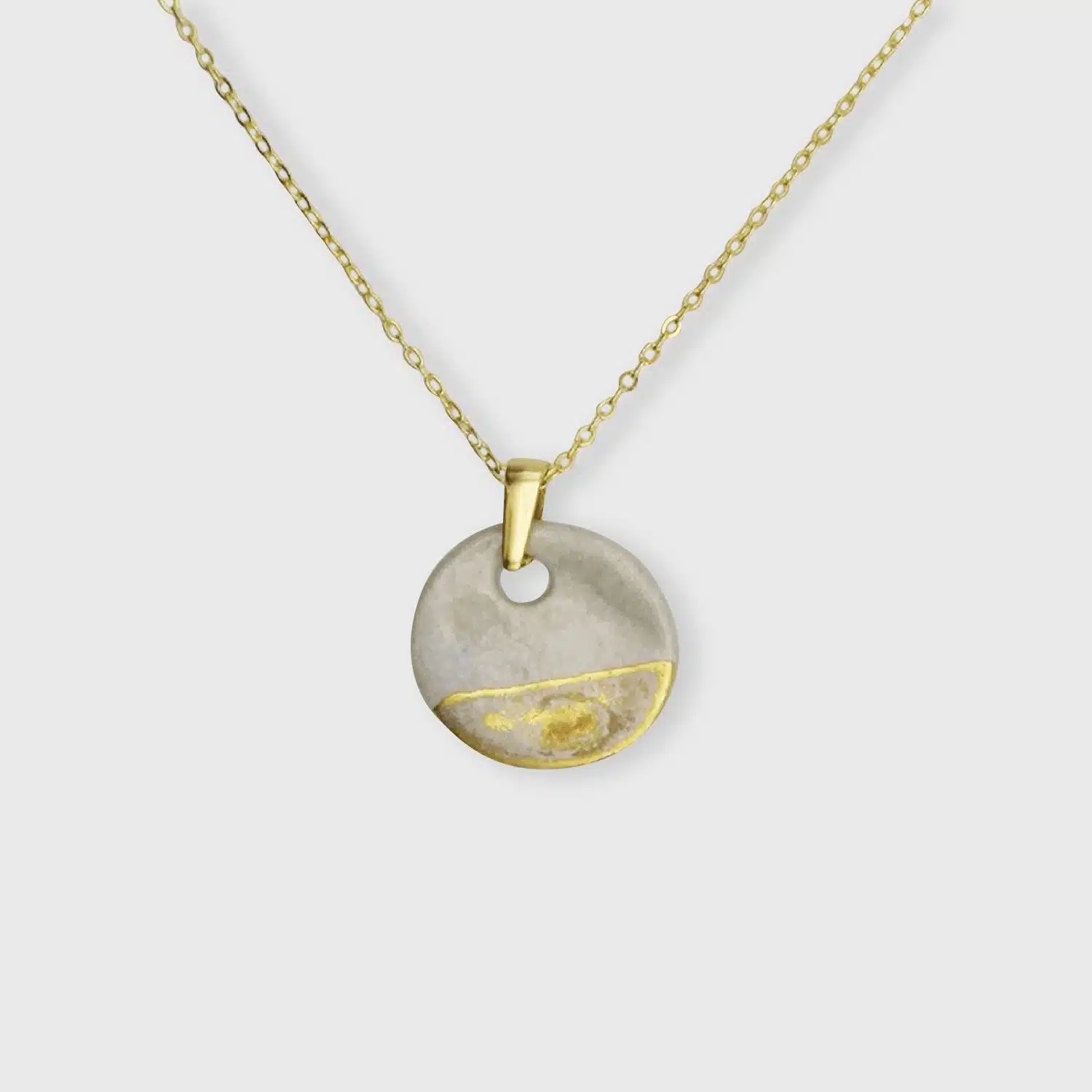 La chaîne est en laiton doré à l’or fin 24K. Le pendentif est en céramique.