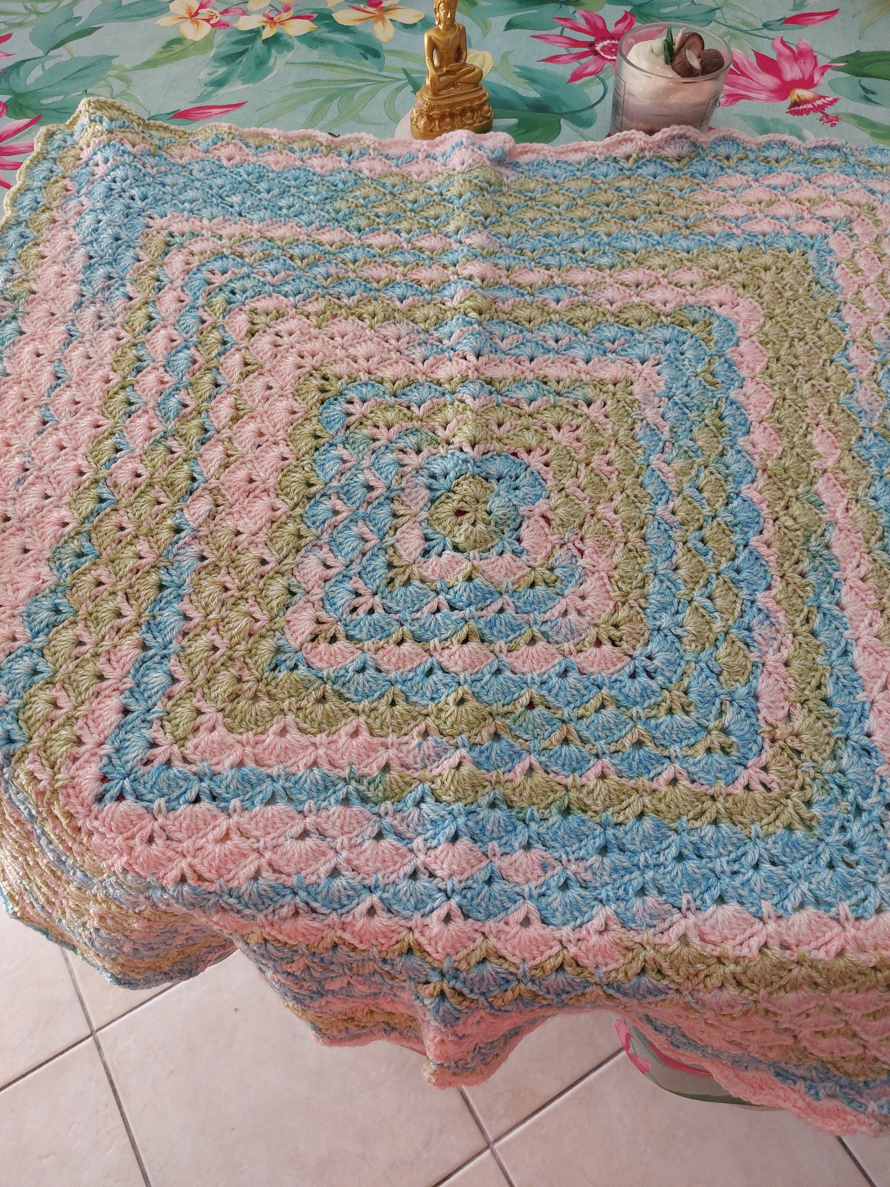 couverture tricotée aux aiguilles dans une laine acrylique très douce pour la peau de bébé