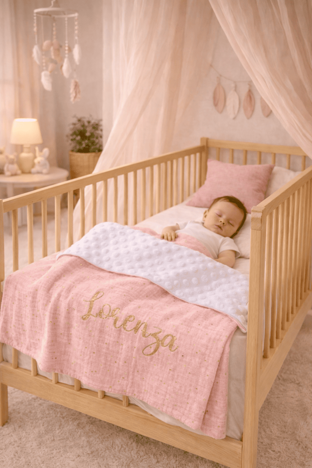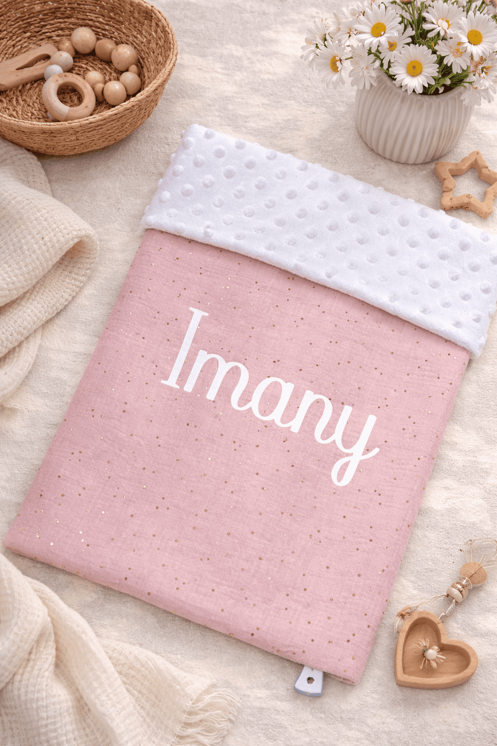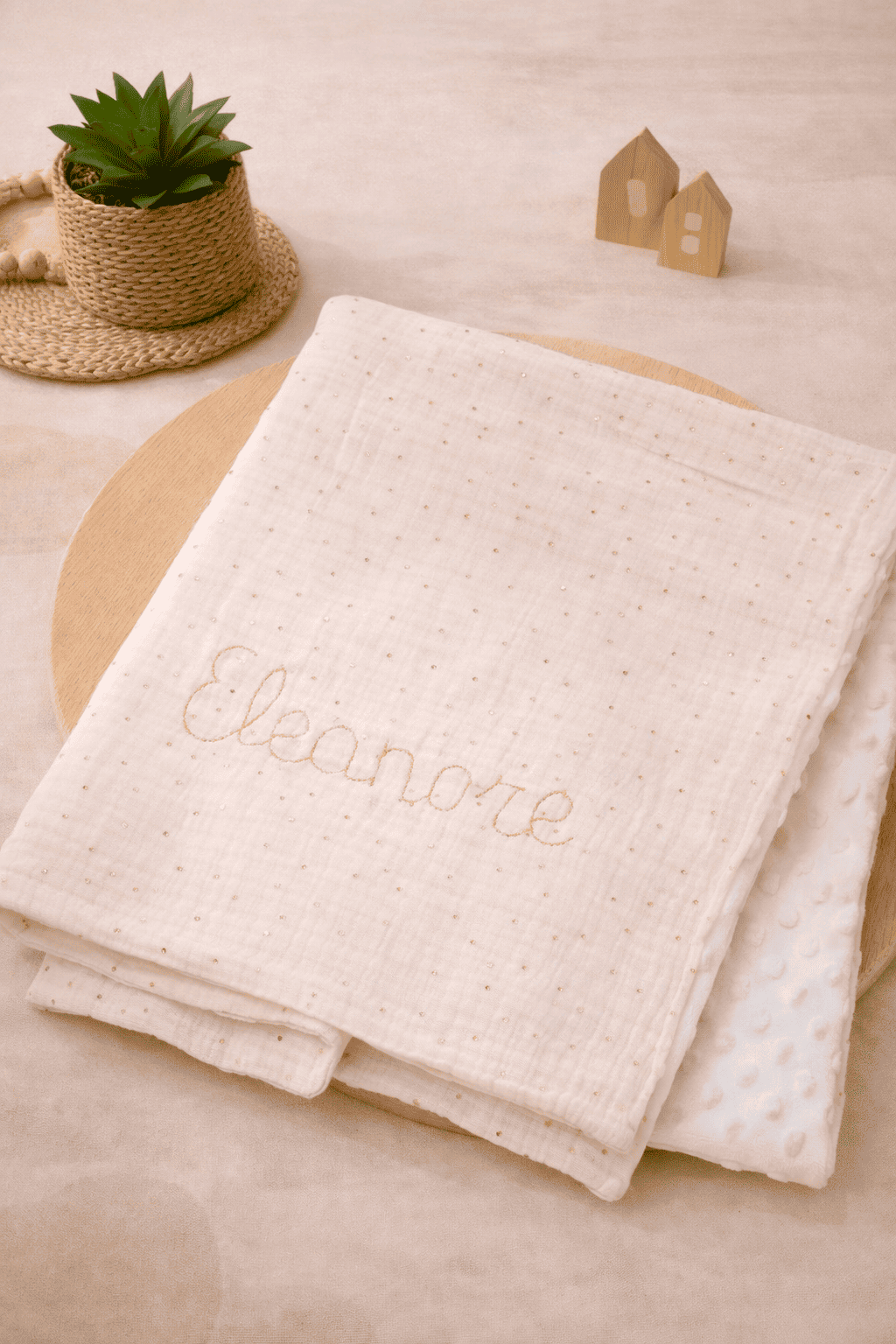 Ces couvertures sont composées d’une face en double gaze de coton et une face en minky/ sherpa/ polaire doudou.