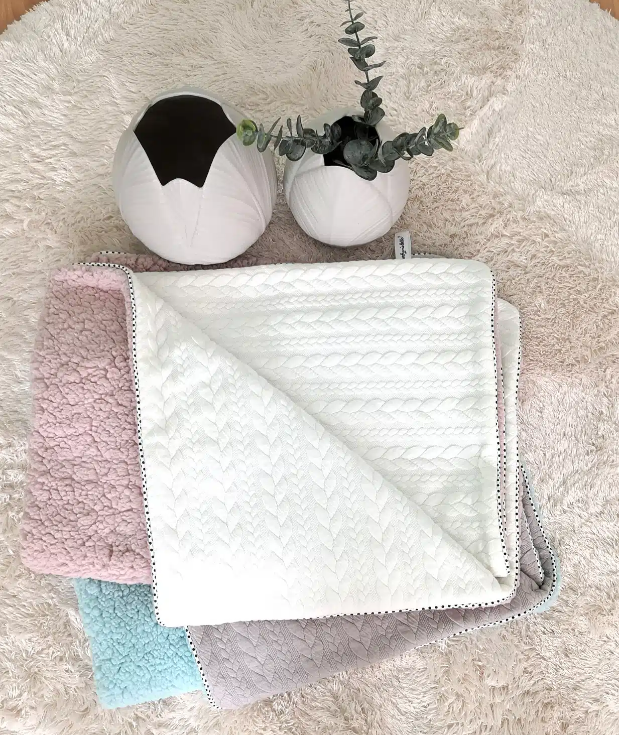 De taille idéale, elle accompagnera bébé partout dés sa sortie de la maternité mais aussi lors de vos déplacements (cosy, poussette, parc…). De plus, elle pourra plus tard servir de petit plaid ou de couvre lit pour des moments douceur.