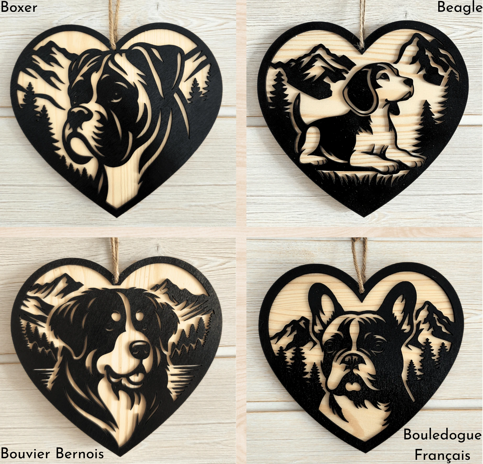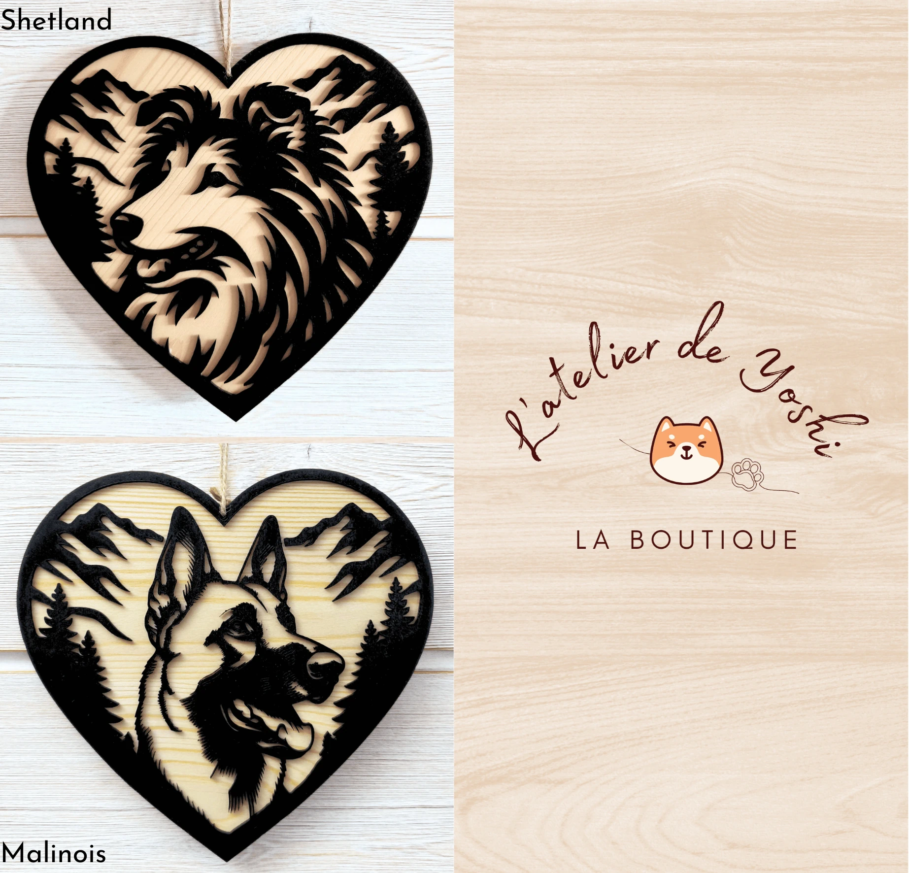 Ce cœur en bois fait main est une excellente idée cadeau pour les passionnés et les propriétaires de chiens.