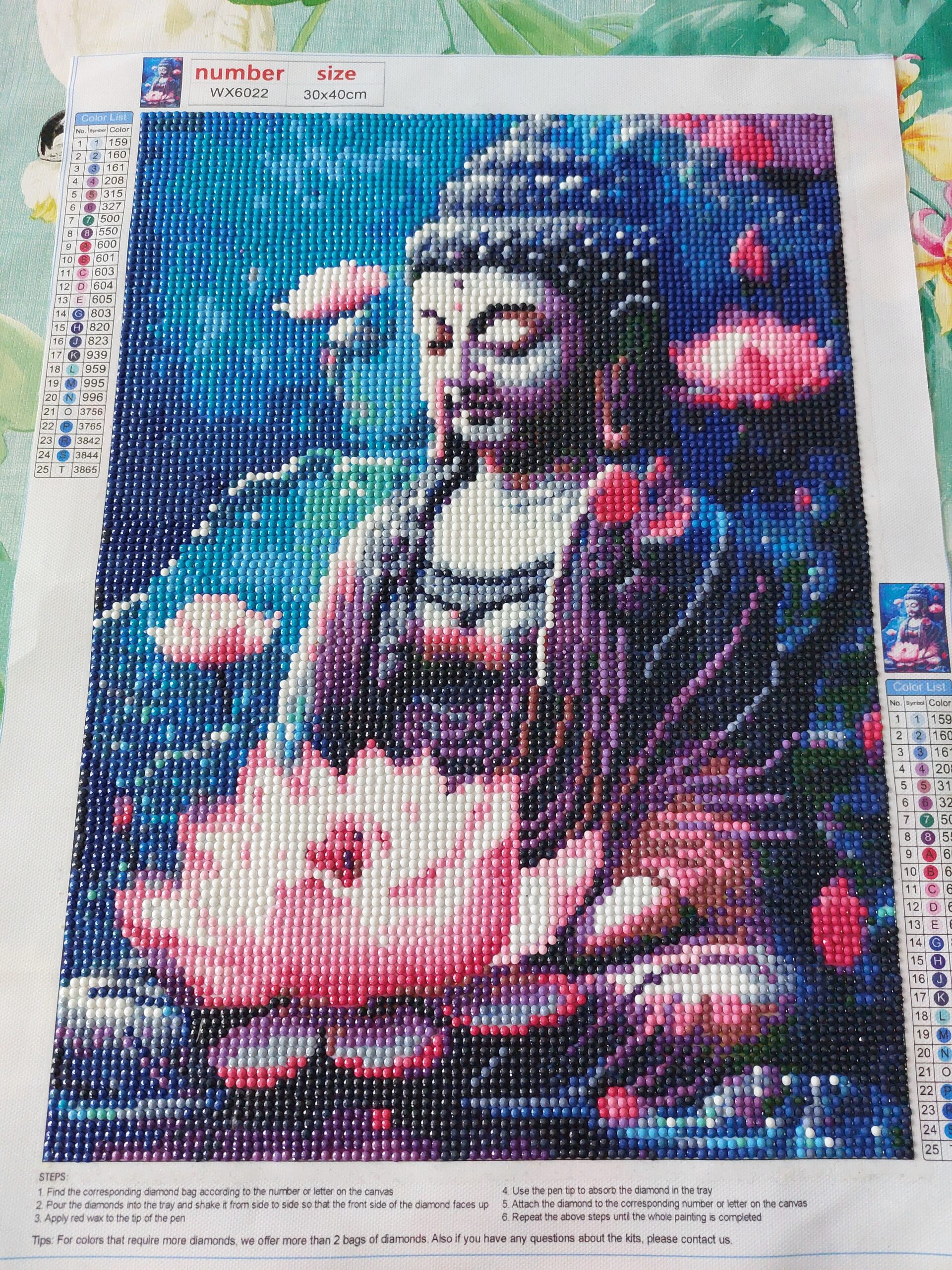 Apportez une touche d’élégance et de raffinement à votre intérieur avec cette œuvre en diamond painting représentant un bouddha avec lotus