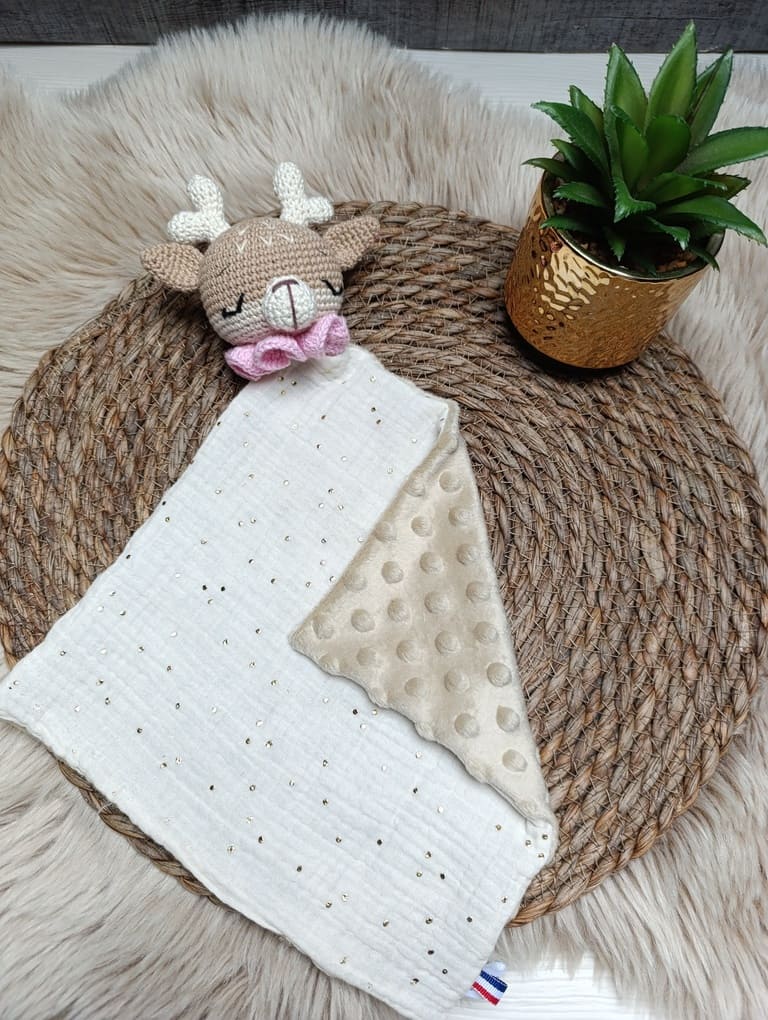Découvrez nos doudous biches, entièrement faits à la main avec amour et soin. Chaque biche est unique, créé avec des tissus de qualité et crocheté avec une attention particulière aux détails.