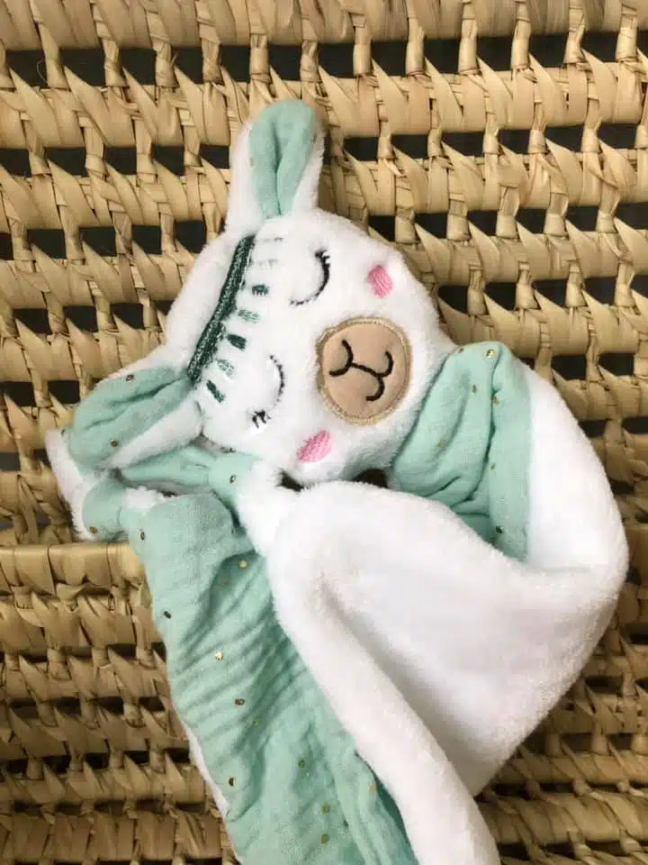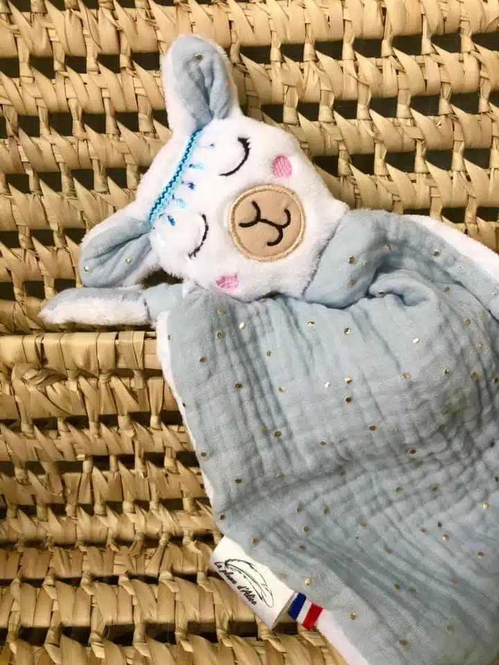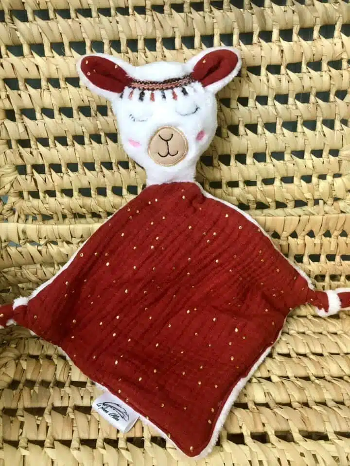Elly est un doudou lama fait main, dans mon atelier en Bretagne,